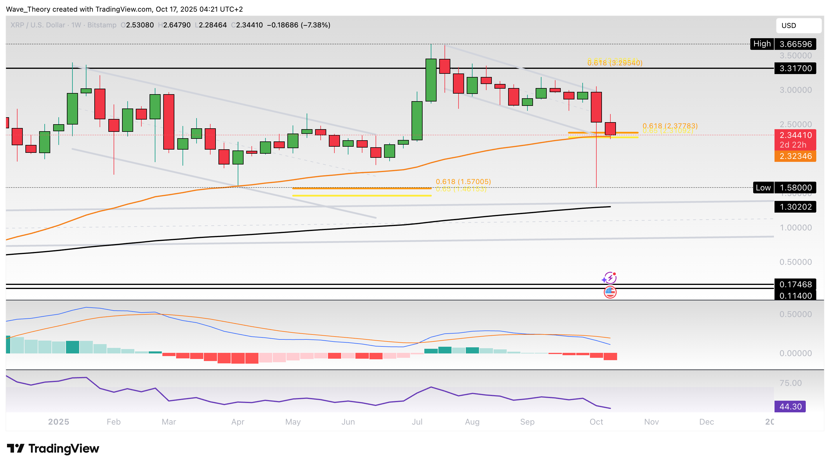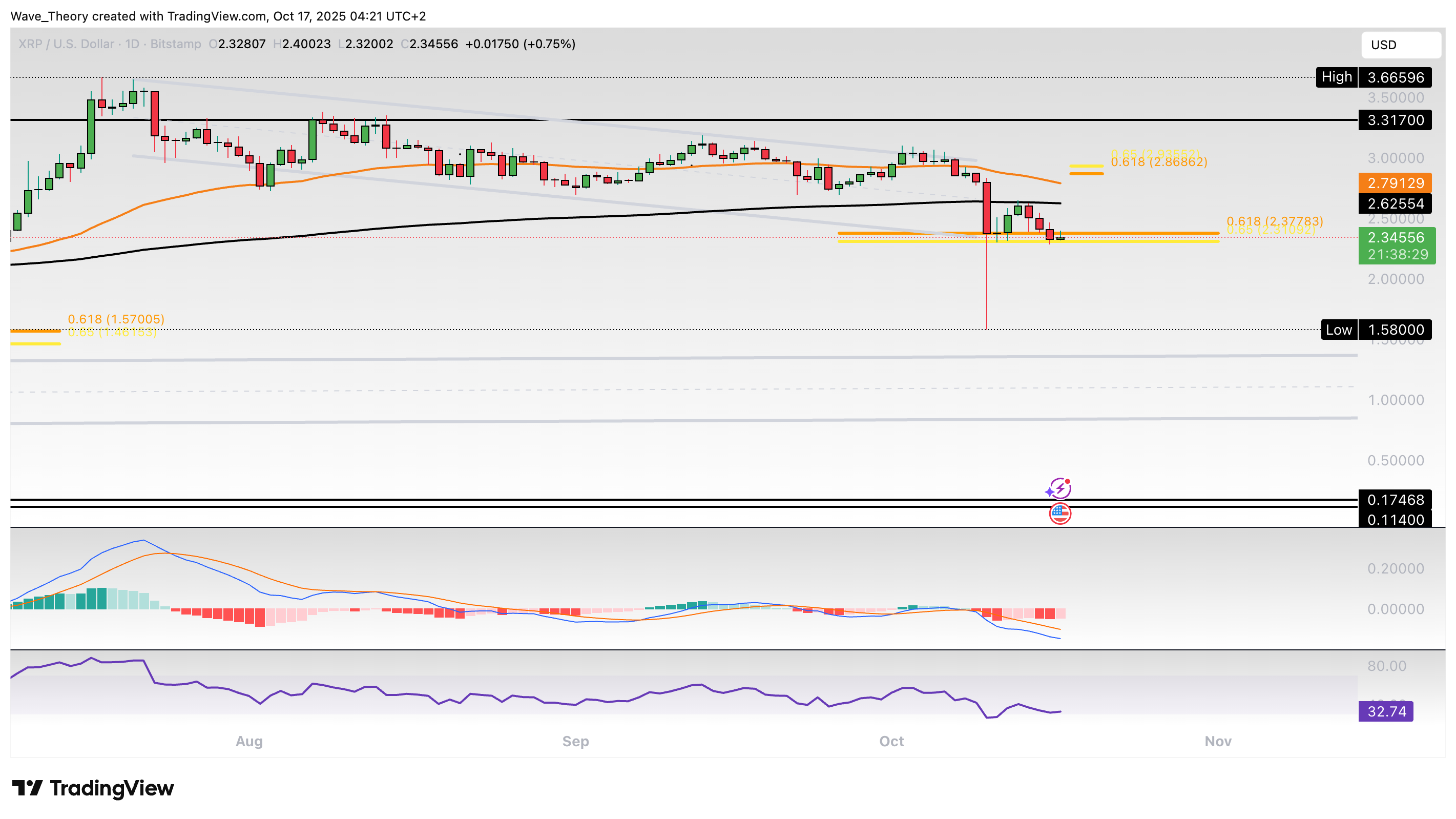 Der XRP Kurs befindet sich zurück an der Golden Ratio Unterstützung bei rund 2,35 USD