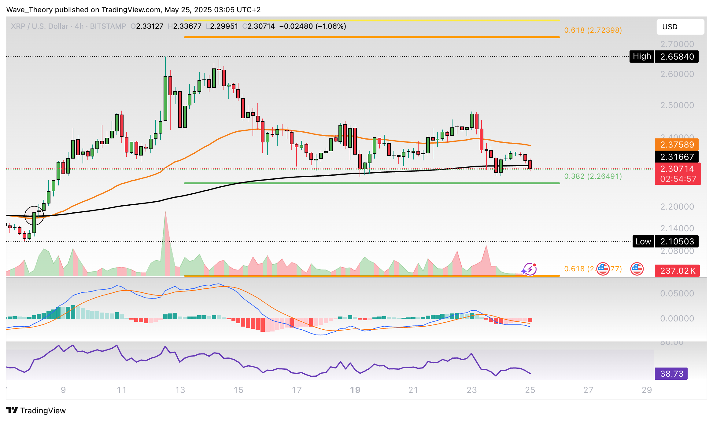 Ripple-Prognose für Sonntag, 25. Mai 2025: Der XRP Kurs konnte den entscheidenden Fib Widerstand nicht überwinden sondern kehrt stattdessen zur Unterstützung zurück.