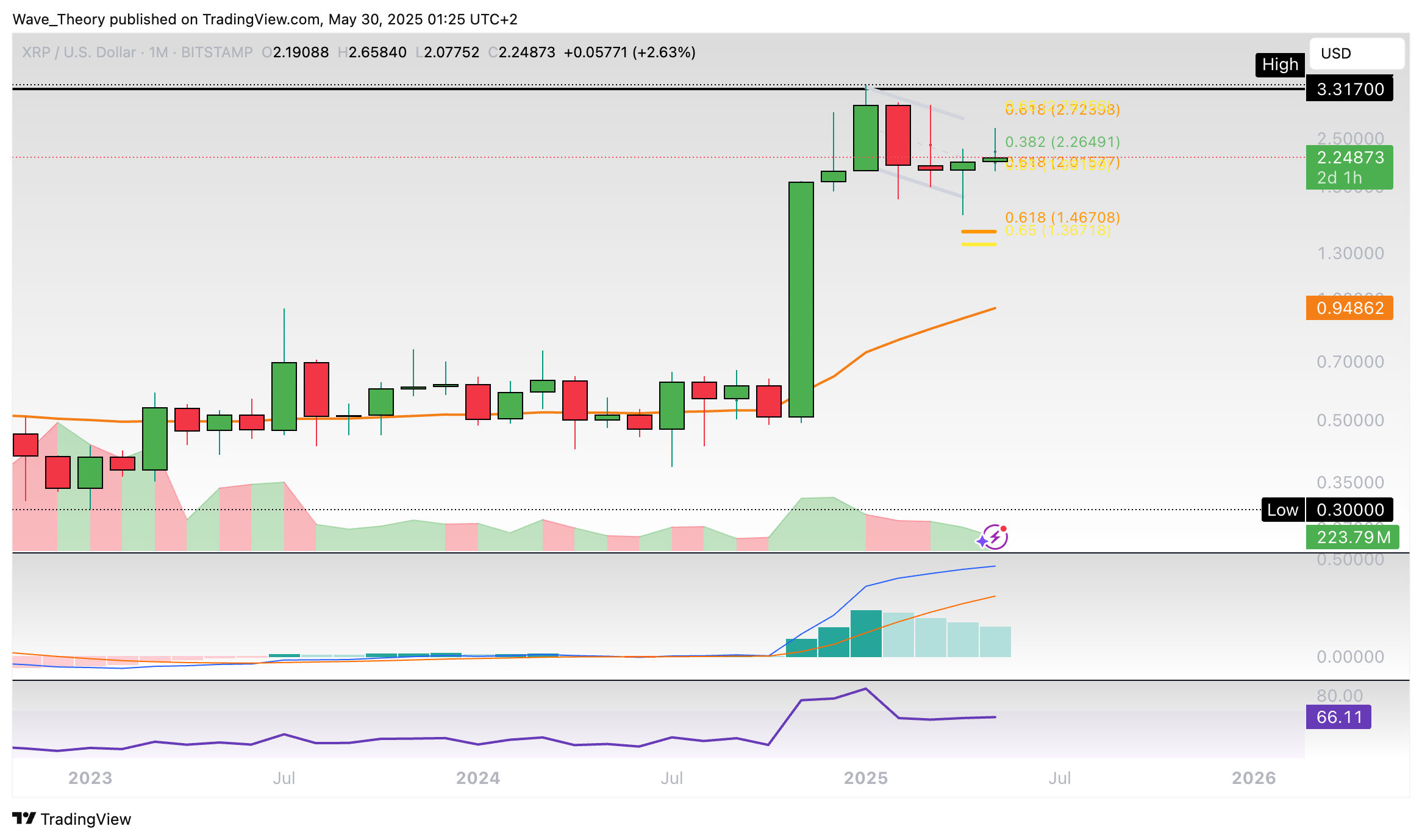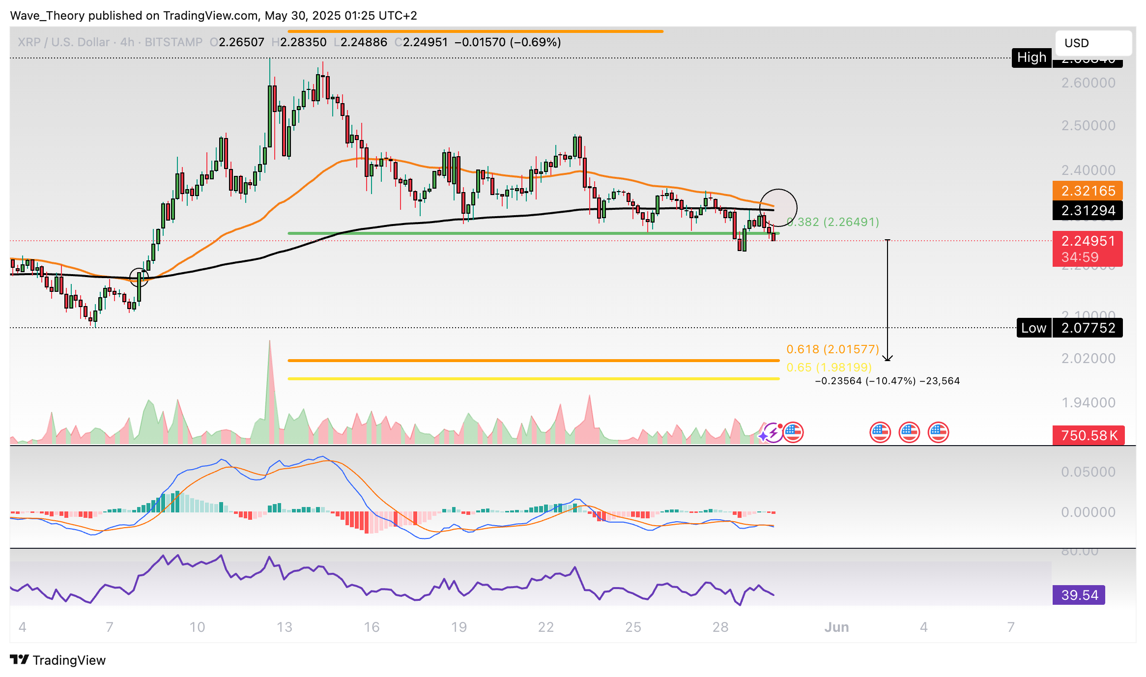 XRP Kurs erreicht 0,382 Fib Unterstützung bei rund 2,265 USD