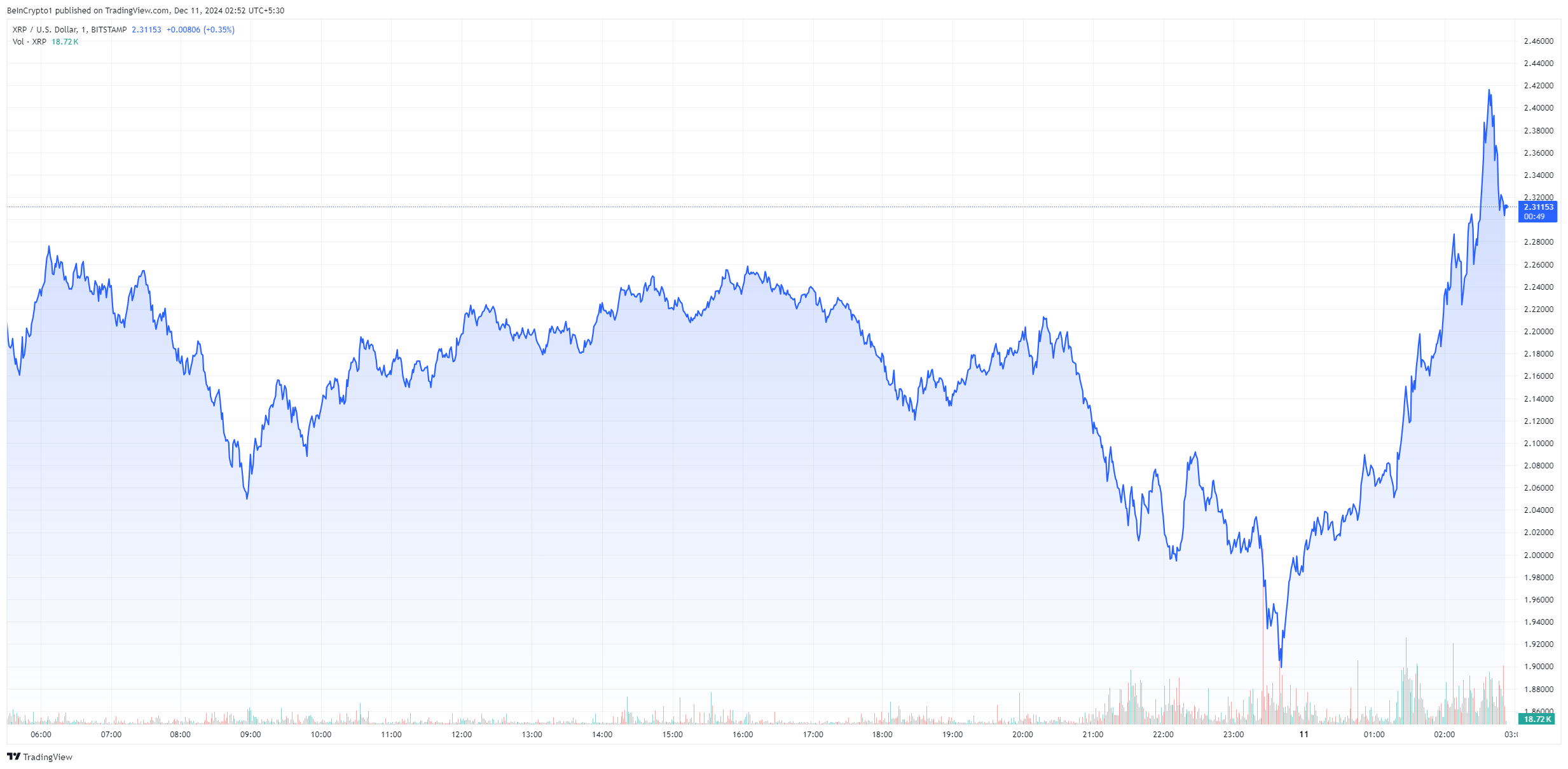 Daher ist die heutige Genehmigung eine plötzliche Überraschung für den Markt und der Kurs reagiert entsprechend. XRP steigt innerhalb einer Stunde nach der Ankündigung der NYDFS um fast 10 Prozent. Später am Tag fällt der Token kurz unter 2 USD.