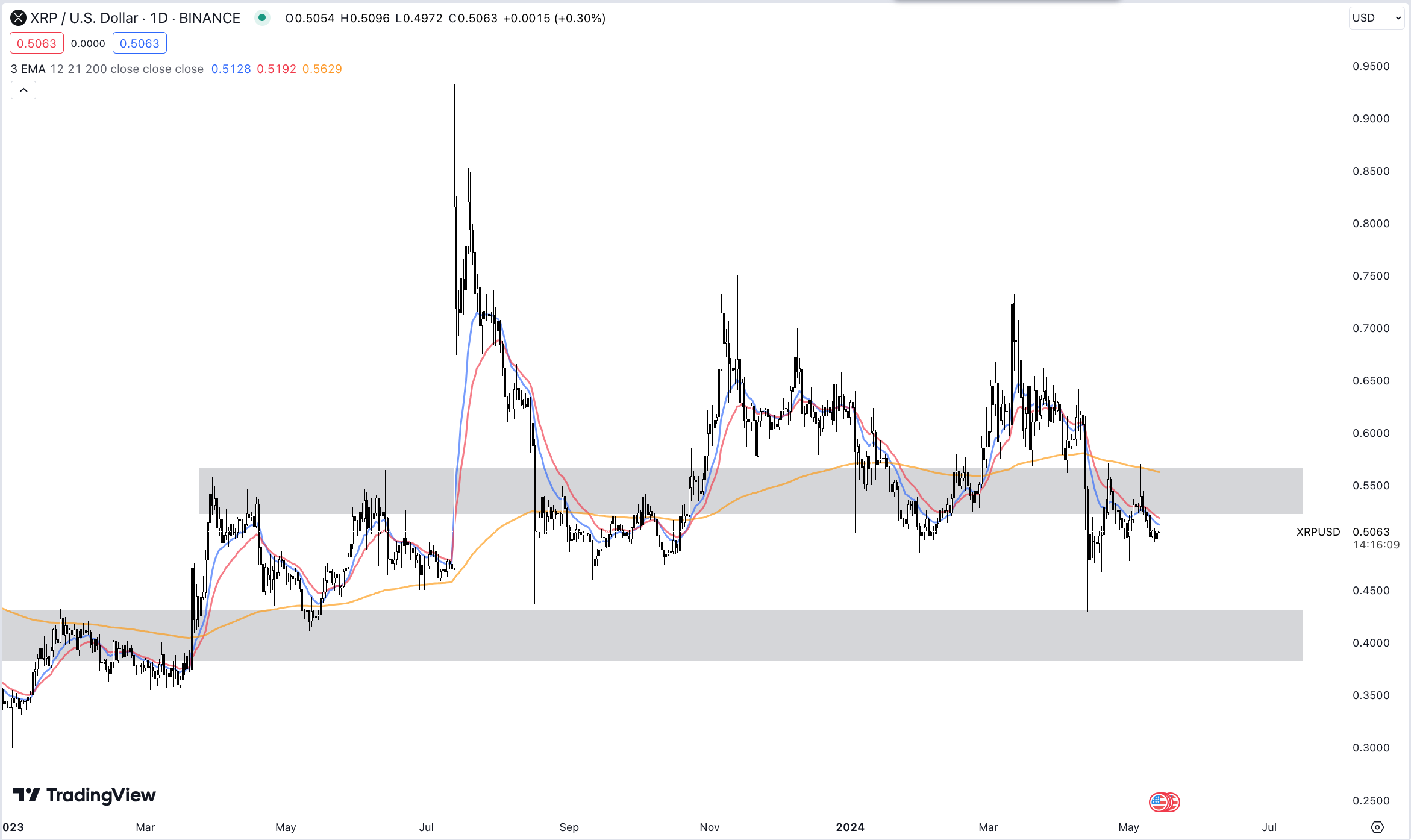 Bis zuletzt schien der XRP Kurs kaum von den bemerkenswerten Transaktionen beeinflusst. Nachdem er gestern einen Tiefstwert von 0,4871 USD erreicht hatte, verzeichnete er einen leichten Anstieg und handelt bei aktuell 0,5096 USD.
