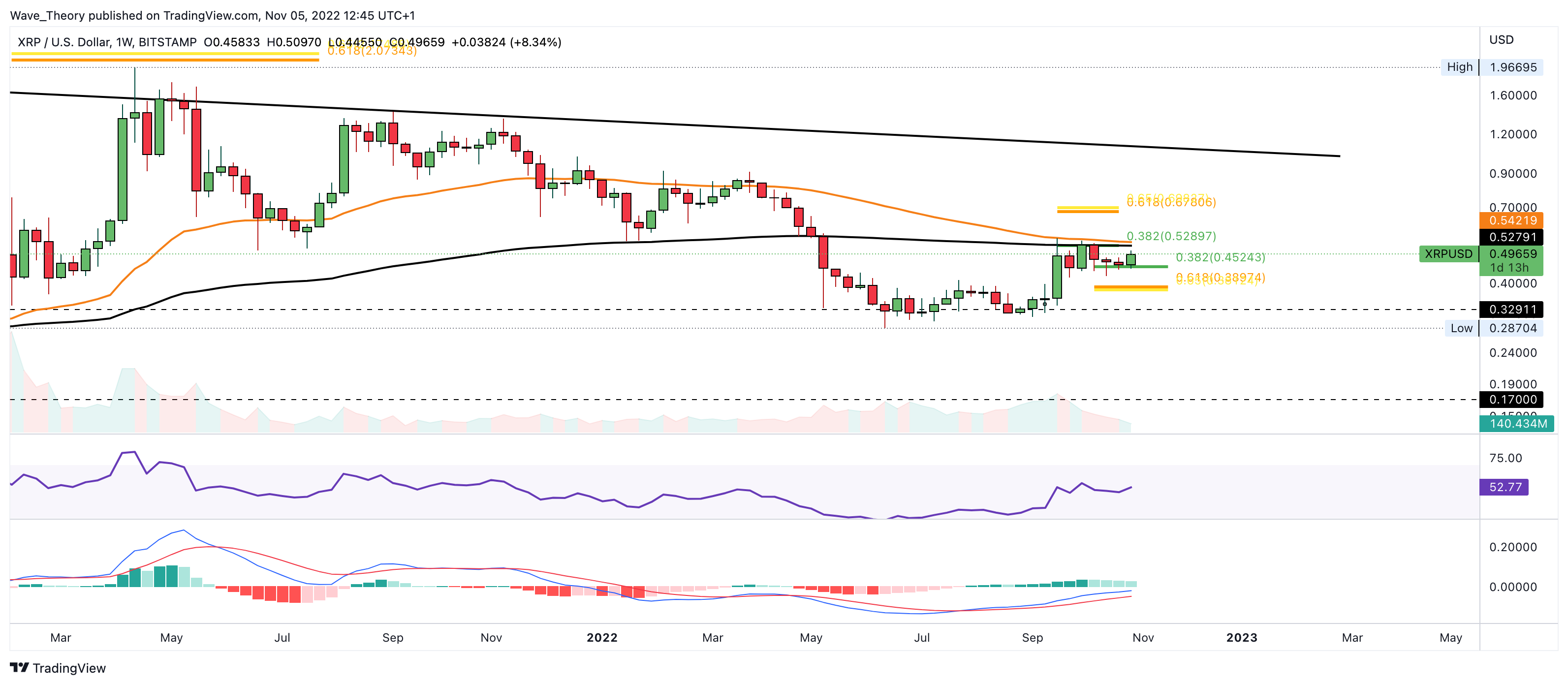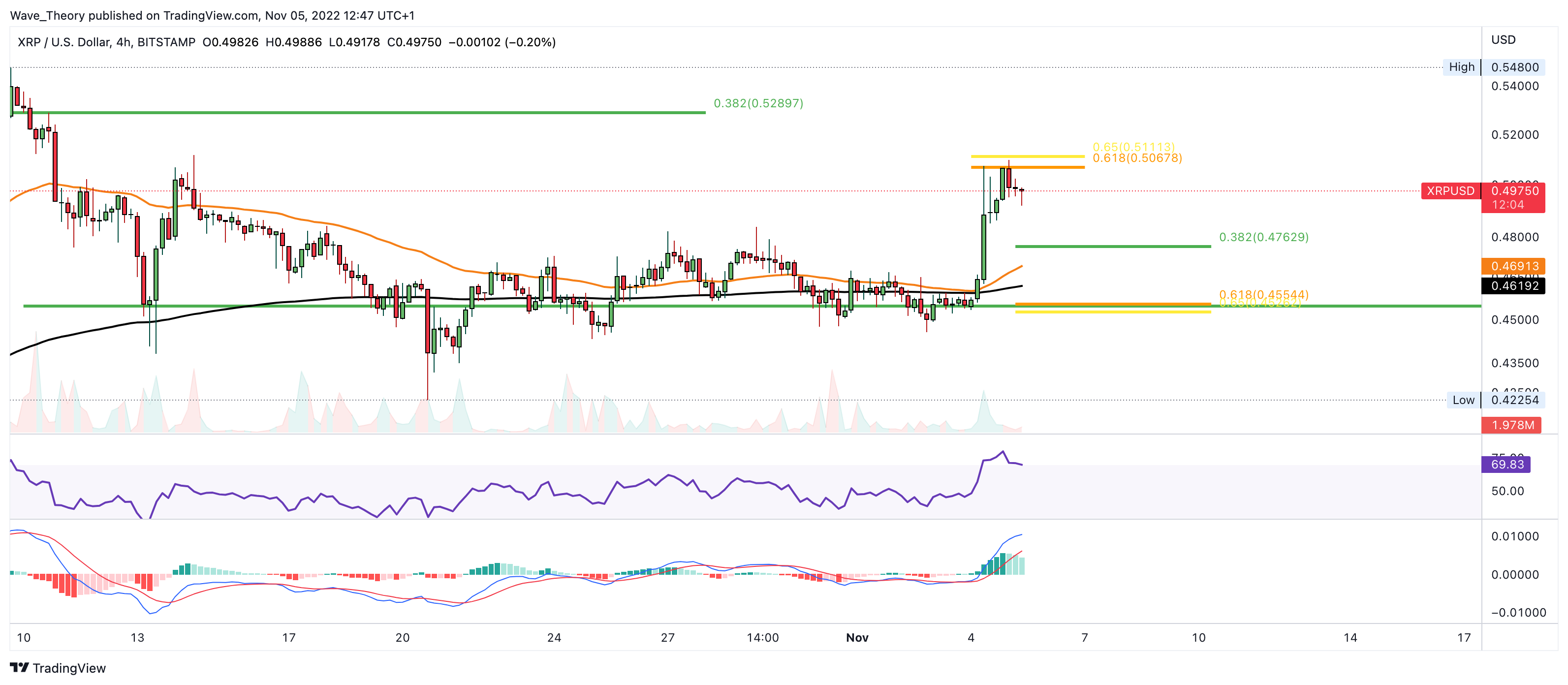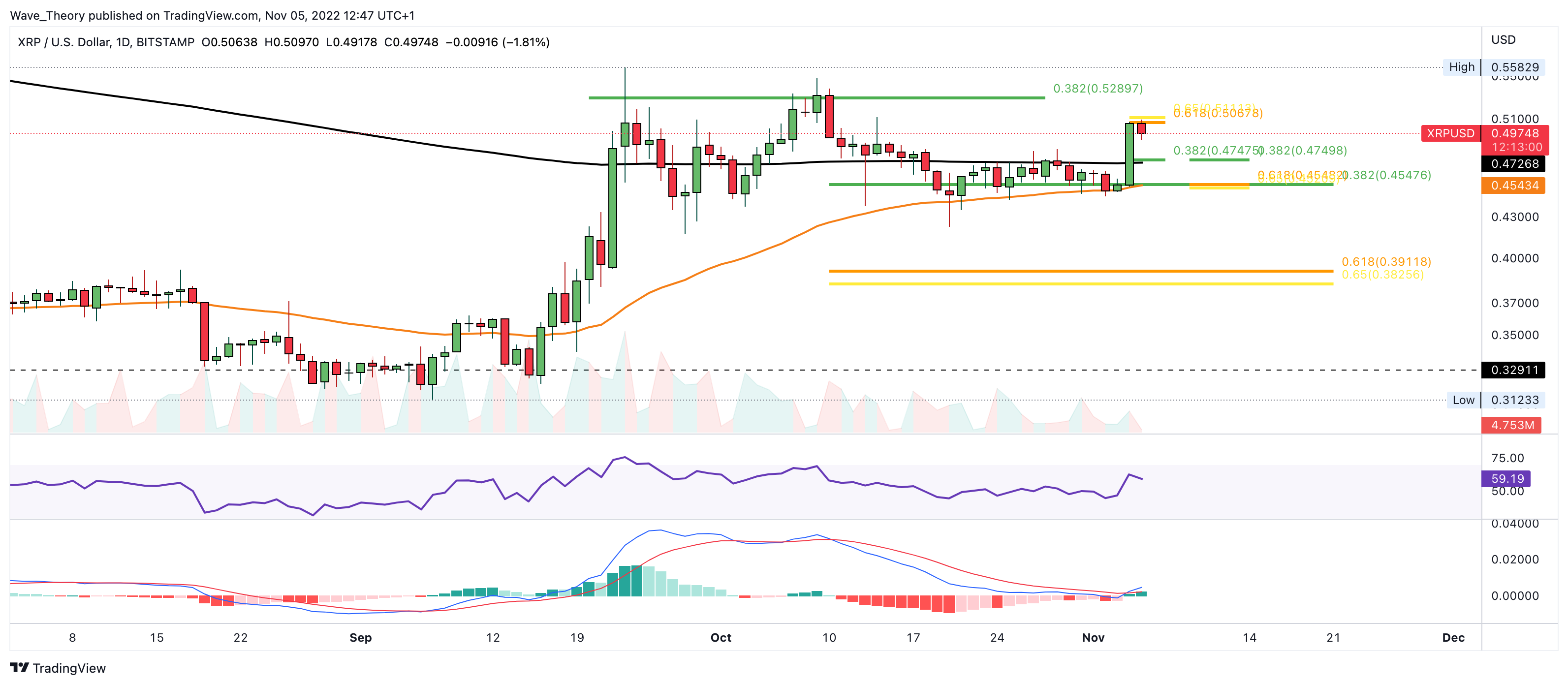 Der XRP Kurs stößt am Golden Ratio Widerstand an der 0,5 USD Marke auf bärische Abweisung