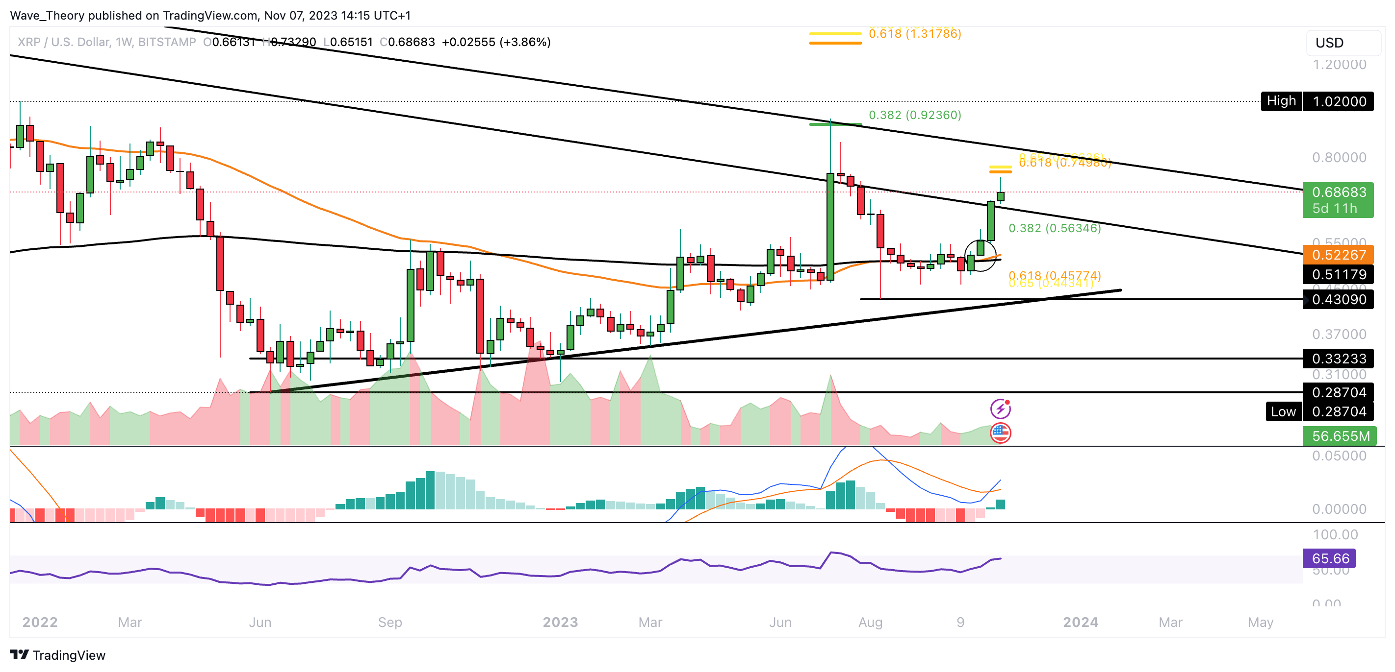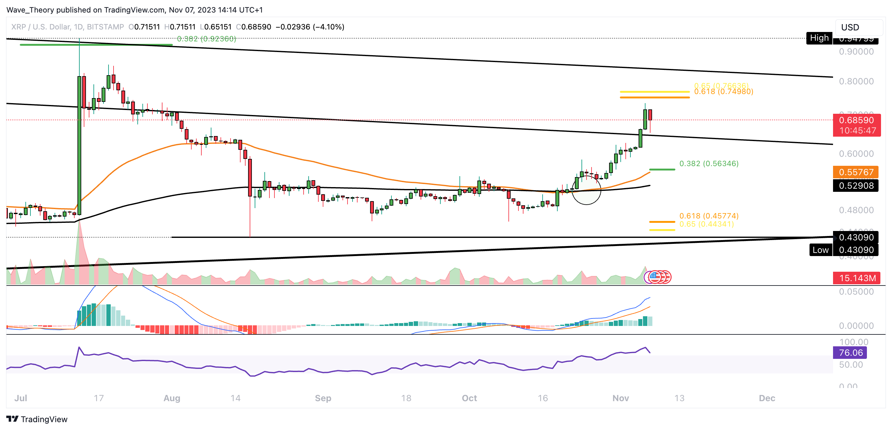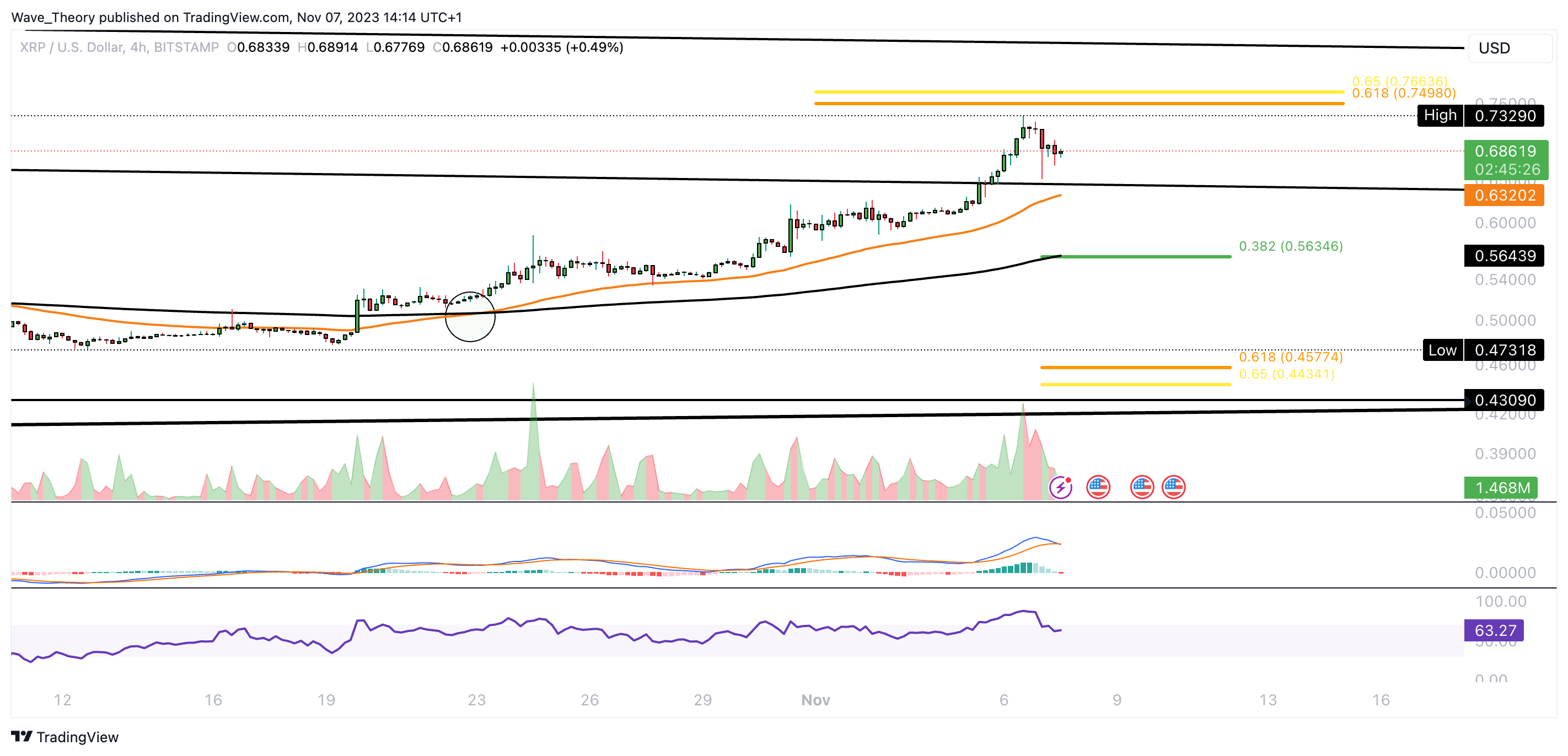 Kann der XRP Kurs den Golden Ratio Widerstand bei rund 0,75 USD brechen?