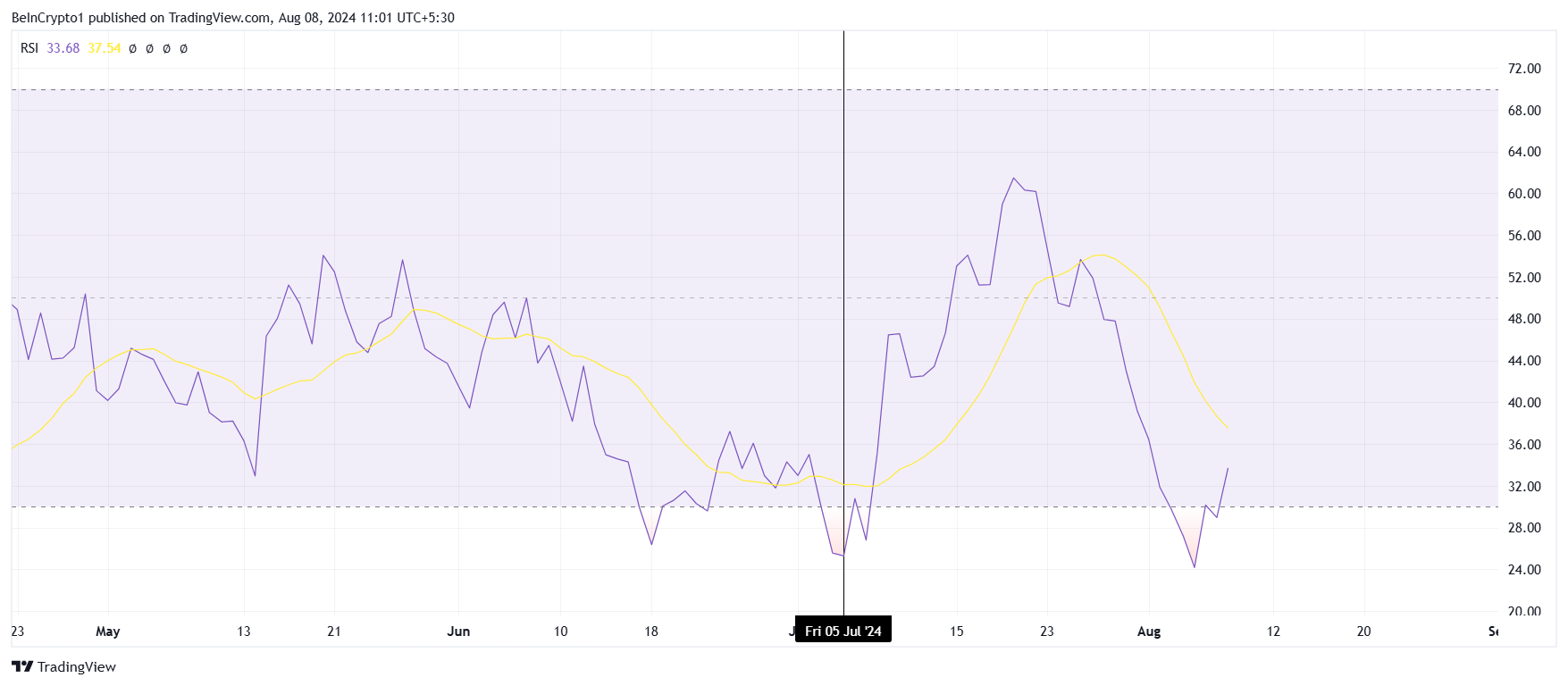 Zudem zeigt der Relative Strength Index (RSI) von SEI einen Aufwärtstrend, obwohl er sich noch in der bärischen Zone befindet. Diese Aufwärtsbewegung ist bedeutend, da sie eine allmähliche Erholung und eine mögliche Trendwende im Markt andeutet, die zu einer positiveren Aussicht führen könnte.