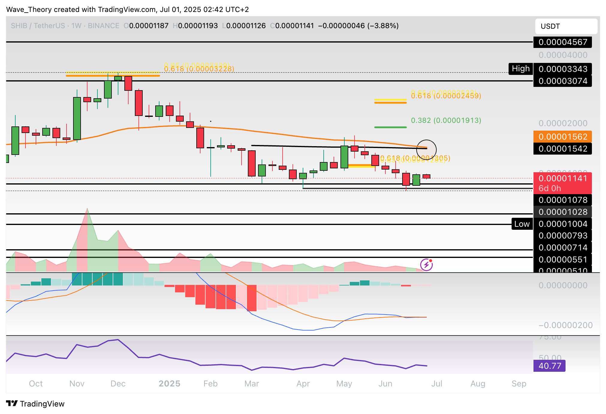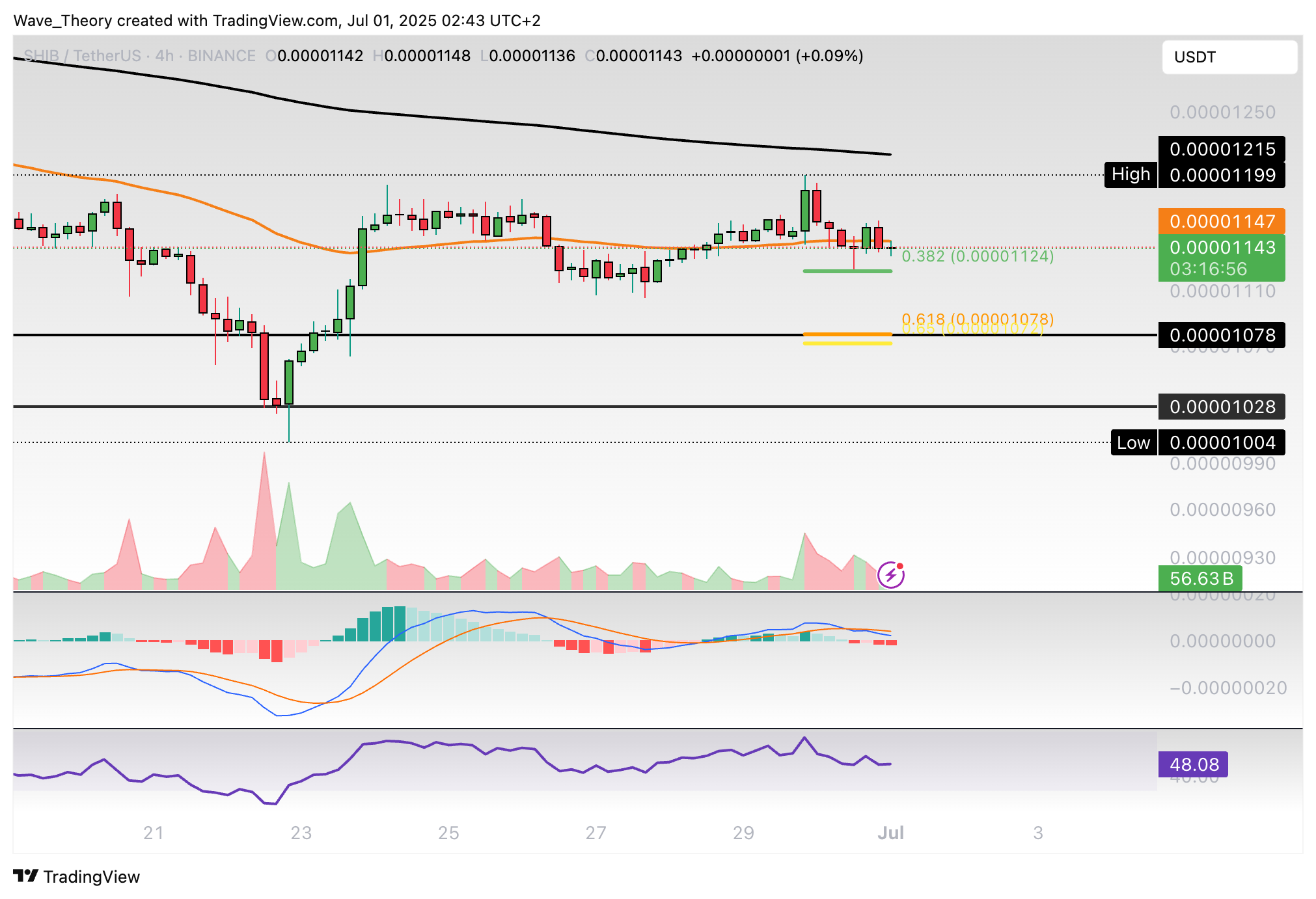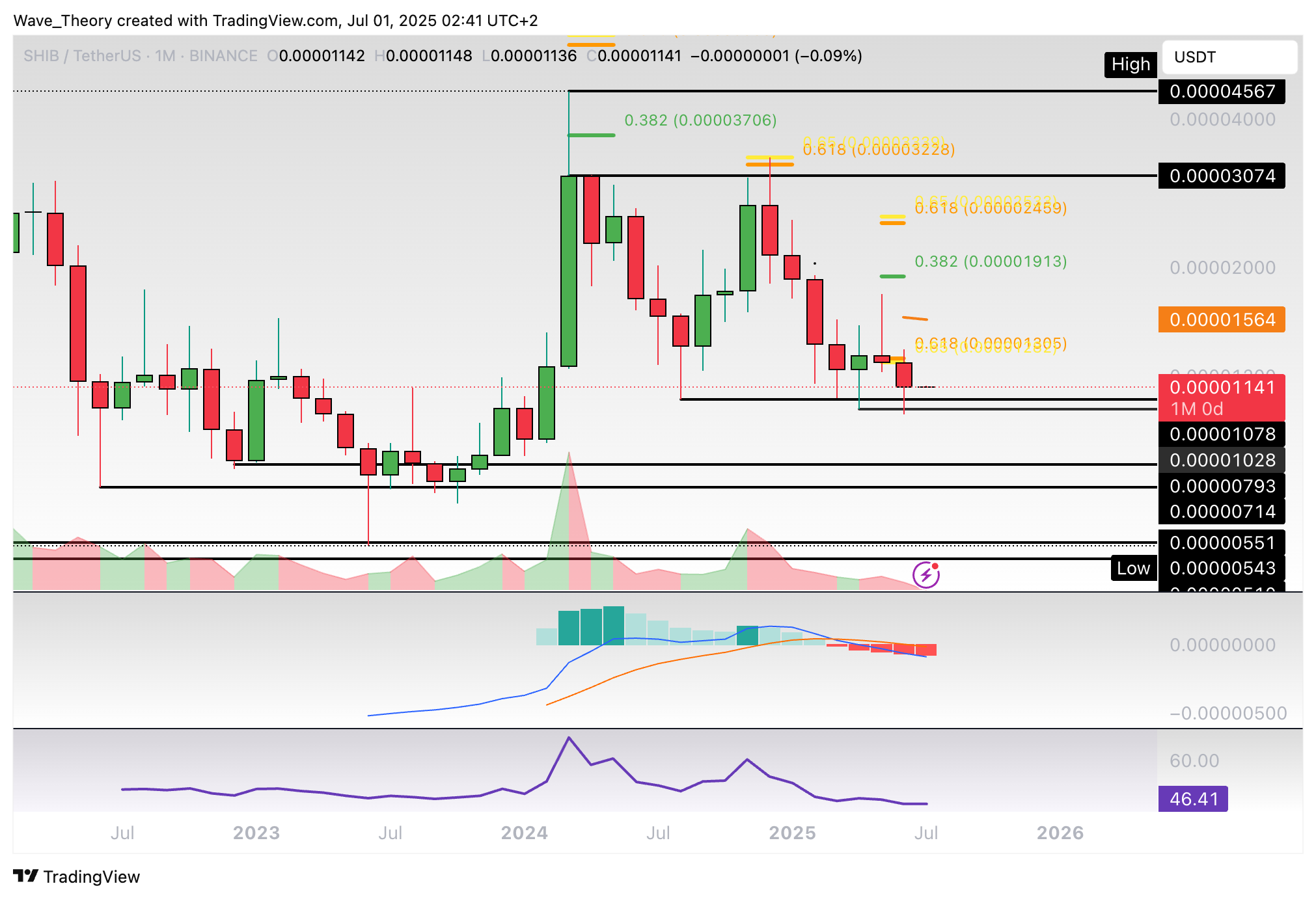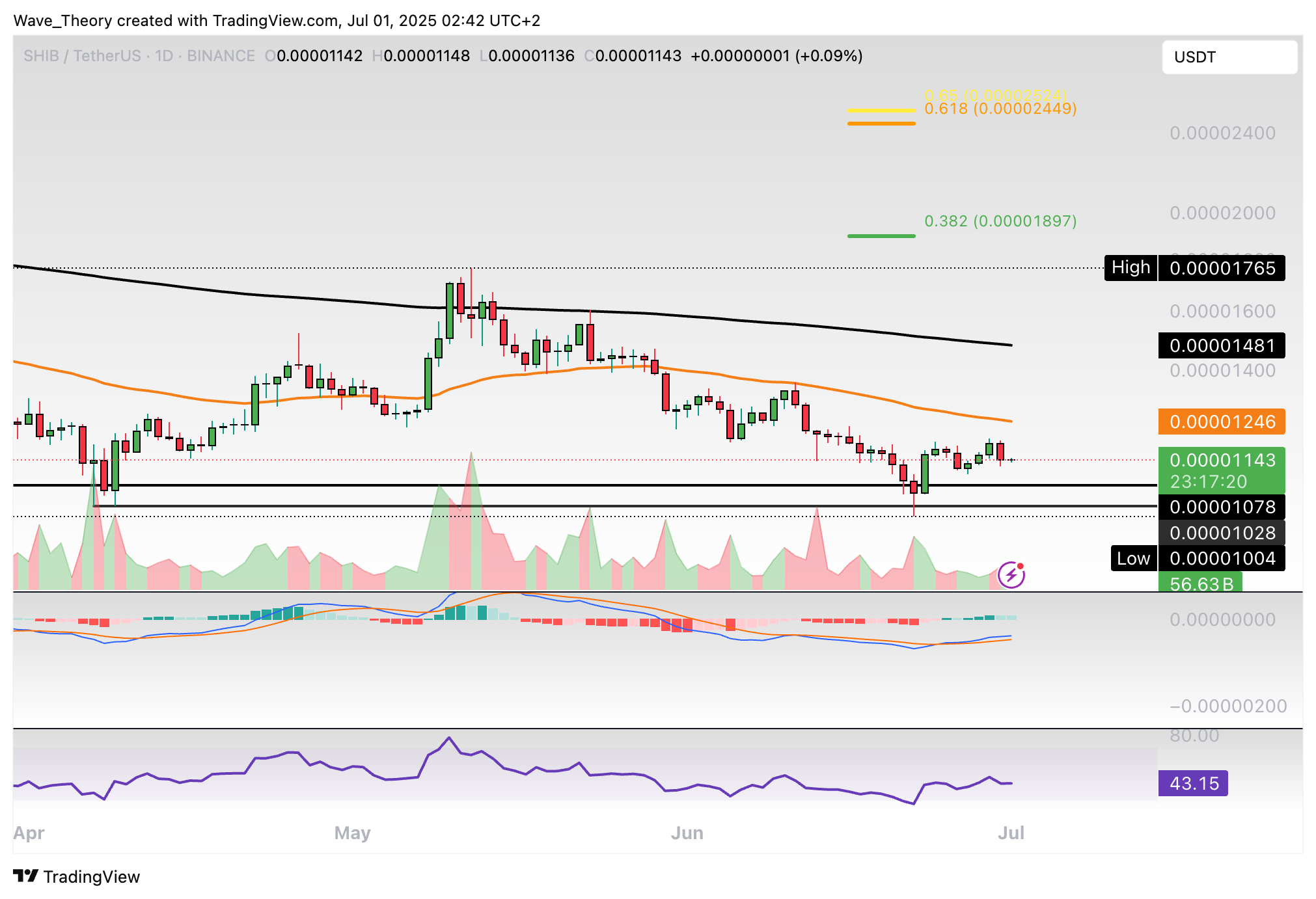 Der RSI gibt dabei keine eindeutigen Signale. Nichtsdestoweniger stößt Shiba Inu jetzt an dem 0,382 Fib Niveau bei rund 0,00001124 USD auf signifikante Unterstützung.