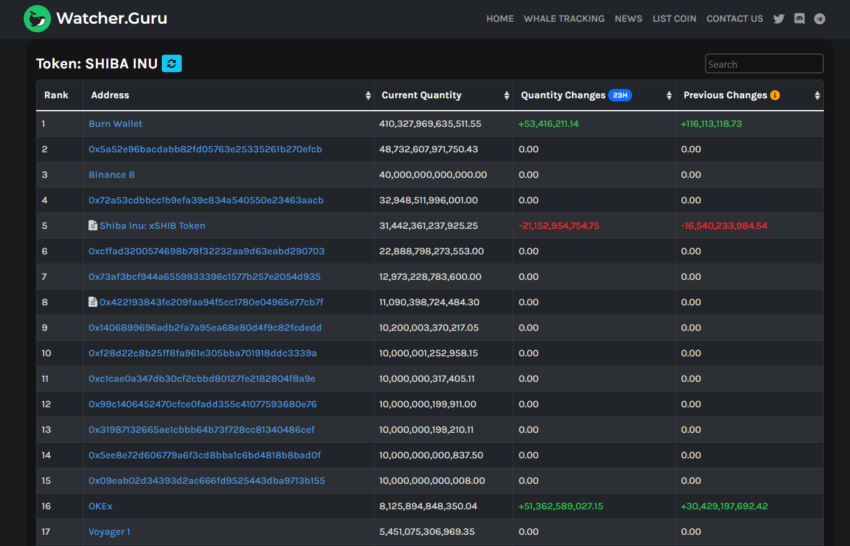 Die Burn Wallet, auch bekannt als Dead Wallet, verfügt natürlich über die meisten Token. Hier werden alle SHIB-Coins verbrannt und folglich aus dem Angebot genommen. Zum Zeitpunkt der Erstellung dieses Artikels beläuft sich die Zahl der Token auf 48.732.607.971.750,43, mit einem Wert von 4,8 Milliarden US-Dollar. Dabei verzeichnet die Wallet ein ständiges Wachstum von über 4 Millionen Token alle 12 Stunden.