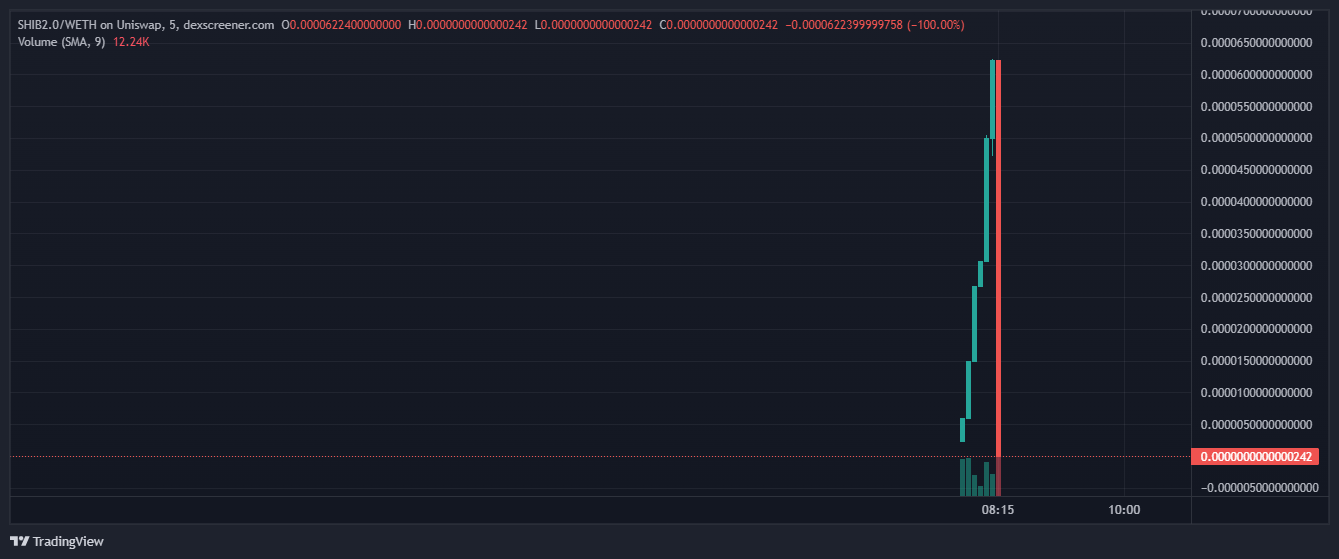 Zahlreiche Twitter-Accounts werben derzeit für den Handel von meheren SHIB 2.0 Token. Am 30. Juni 2023 lancierte eine unbekannte Gruppe SHIB 2.0 auf dem dezentralen Exchange (DEX) Uniswap – und machte sich dann mit der Liquidität der Nutzer:innen aus dem Staub.