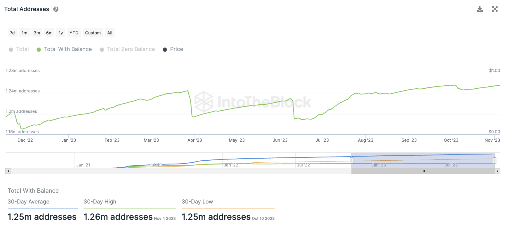 Das Gesamtwachstum der Shiba Inu Adressen im SHIB Netzwerk weist eine Stagnation auf. In den letzten 30 Tagen wurden im Durchschnitt 1,25 Millionen Shiba Inu Adressen mit einem SHIB Guthaben gezählt. An dieser Zahl hat sich seit Monaten nicht mehr viel getan.