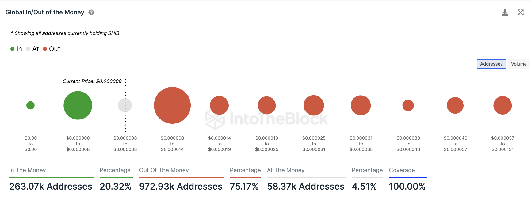 Der Anteil an Adressen, die den Shiba Inu Coin halten, ist von rund 9 auf 20 % gestiegen. Damit ist eine deutliche Verbesserung für Shiba Inu Anleger zu erkennen.