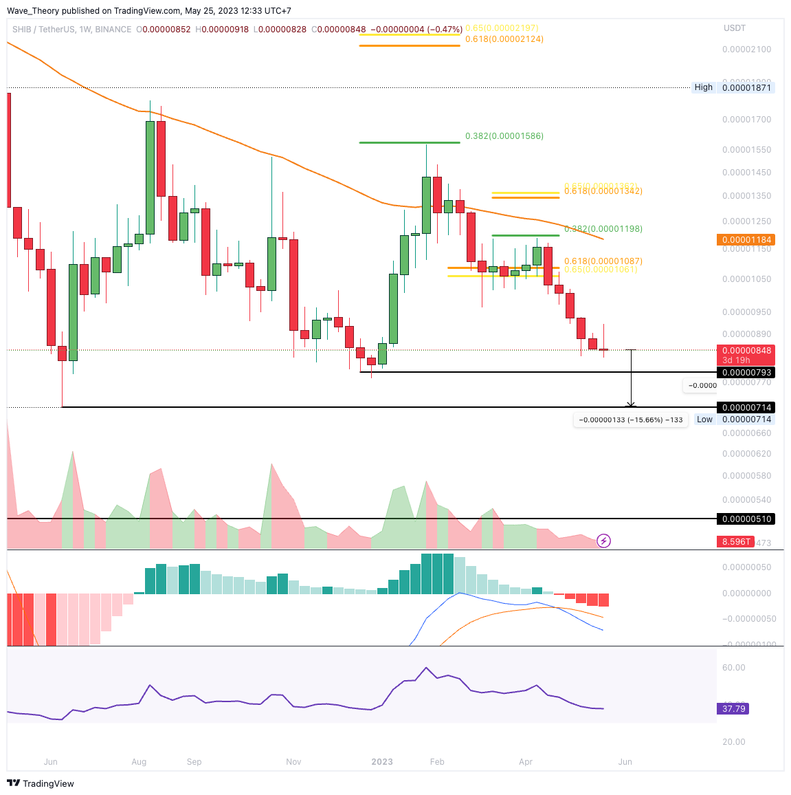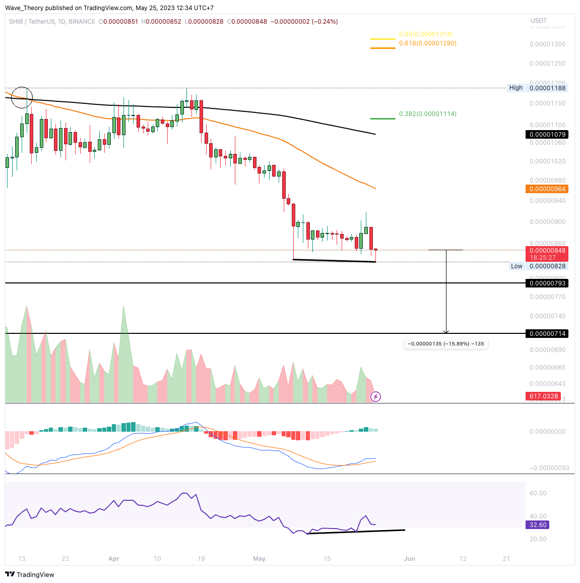 SponsoredDer Shiba Inu Coin könnte noch weitere 6,16 – 15,4 % fallen