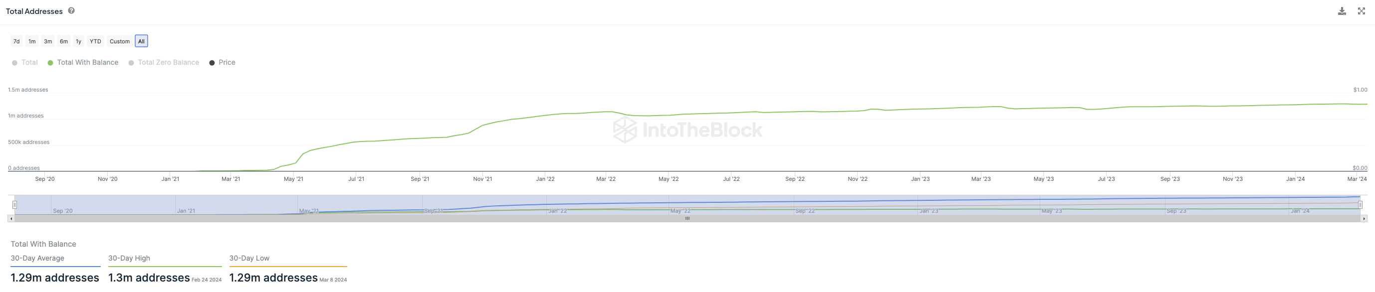 Das Gesamtwachstum der Shiba Inu Adressen mit SHIB Guthaben befindet sich in einer Stagnationsphase. In den letzten 30 Tagen wurden im Durchschnitt 1,29 Millionen Shiba Inu Adressen mit einem SHIB Guthaben gezählt.