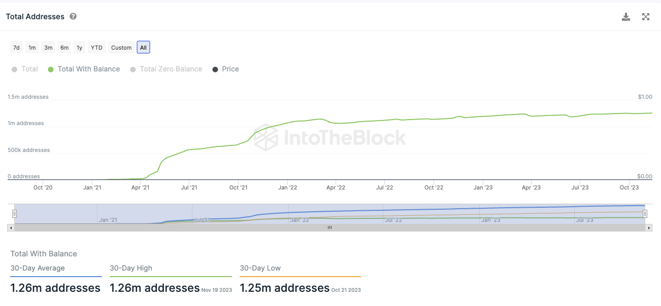 Das Gesamtwachstum der Shiba Inu Adressen mit SHIB Guthaben befindet sich in einer Stagnationsphase. In den letzten 30 Tagen wurden im Durchschnitt 1,26 Millionen Shiba Inu Adressen mit einem SHIB Guthaben gezählt. Diese Zahl ist in den letzten Monaten nur sehr leicht gestiegen.