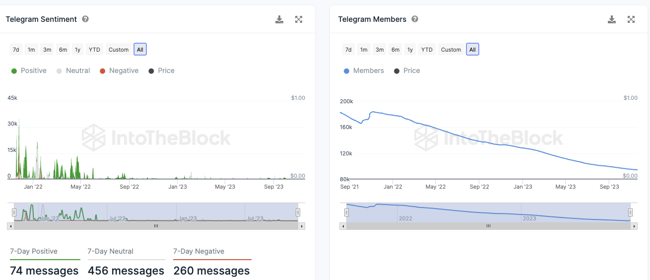 Die Mitgliederzahl der Shiba Inu Telegram Gruppe befindet sich in einem starken Abwärtstrend. Mittlerweile überwiegen auch die negativen Telegram Nachrichten zu SHIB deutlich.