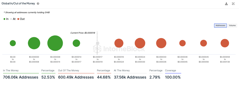 Diese Adressen würden einen Verlust erleiden, wenn sie ihre SHIB Token zum aktuellen Kurs verkaufen würden. Rund 2,8 % verbleiben damit am Break-even Punkt.