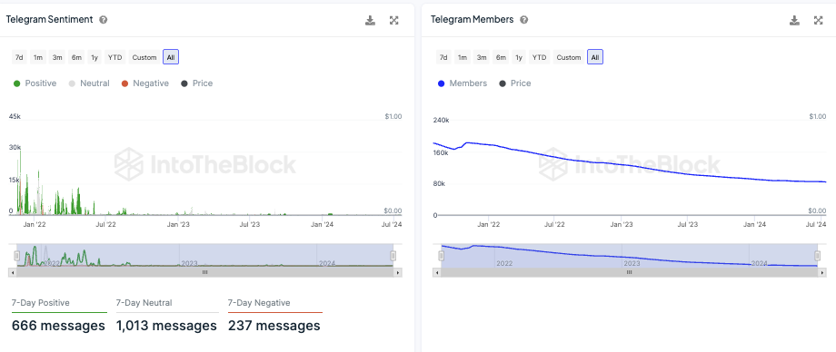 Die Anzahl an Telegram-Gruppe Mitgliedern befindet sich dabei in einem intakten Abwärtstrend.