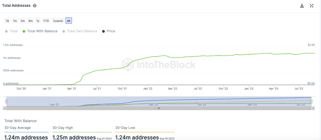 Auch das allgemeine Wachstum an Shiba Inu Adressen im SHIB Netzwerk stagniert, denn seit Monaten befindet sich die durchschnittliche Anzahl an Adressen mit SHIB Guthaben bei rund 1,24 Millionen.