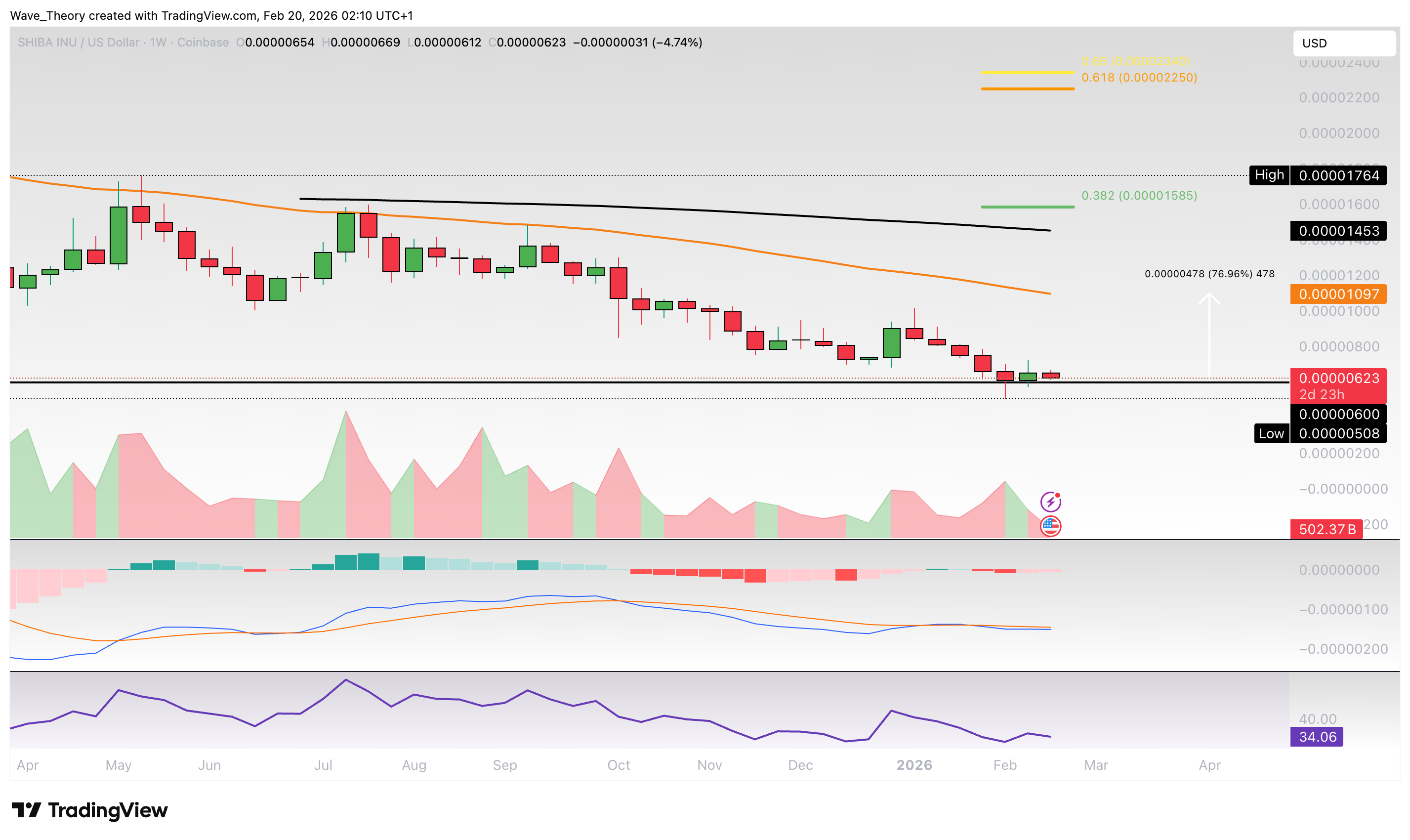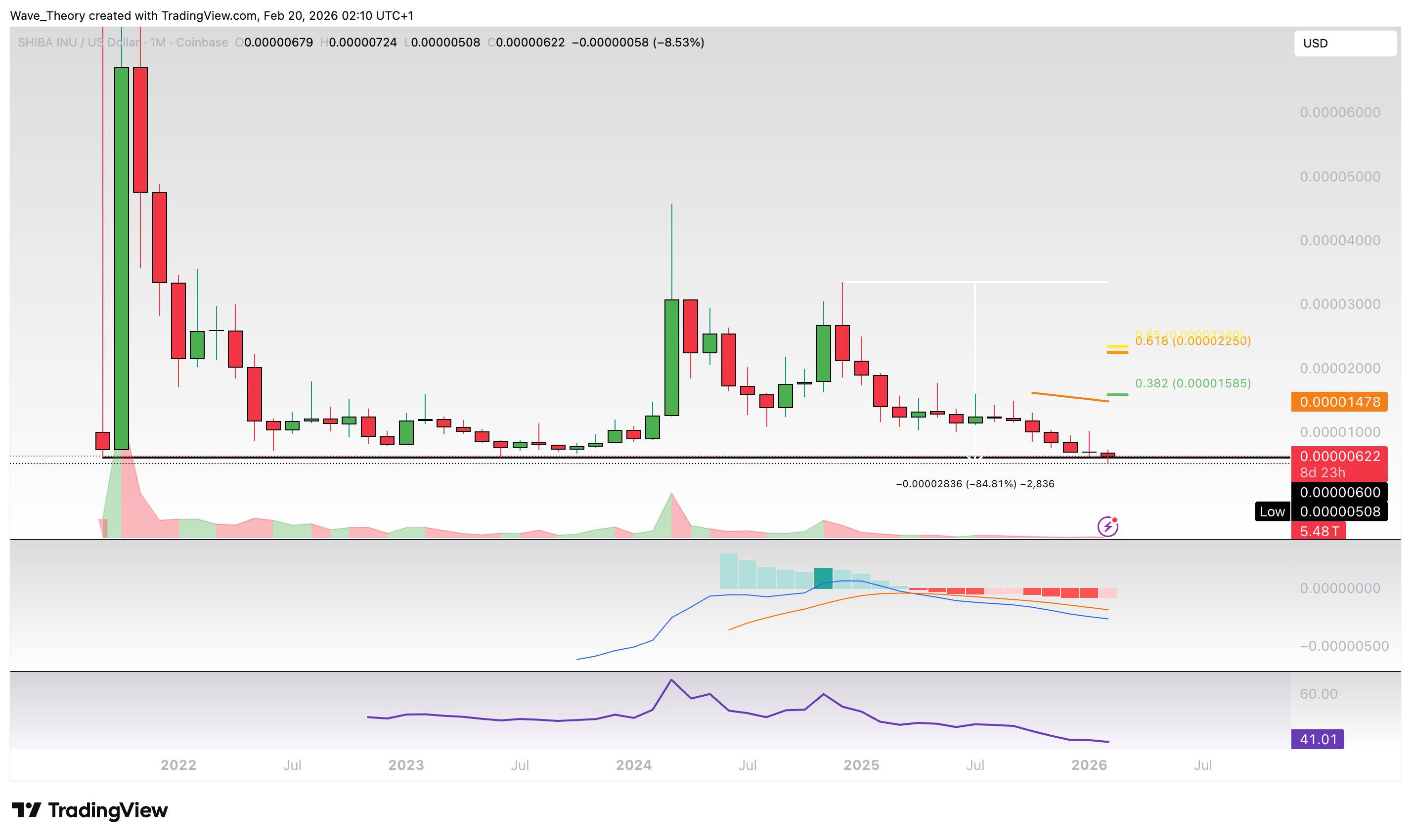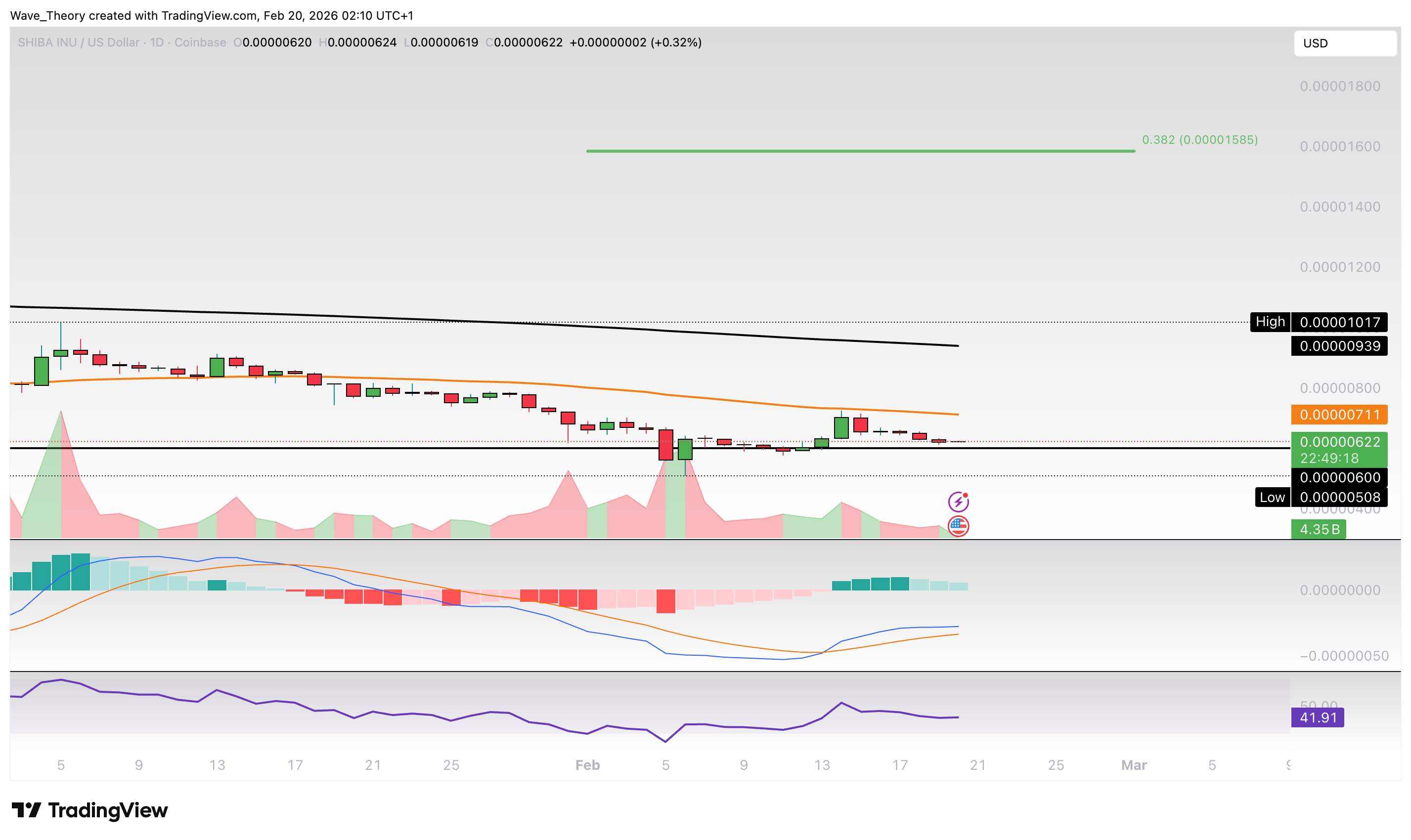 Shiba-Inu-Prognose für Freitag, 20. Februar 2026: Der Shiba Inu Coin hat ein historisches Tief erreicht. Doch könnte der Kurs jetzt eine Aufwärtsbewegung erleben?