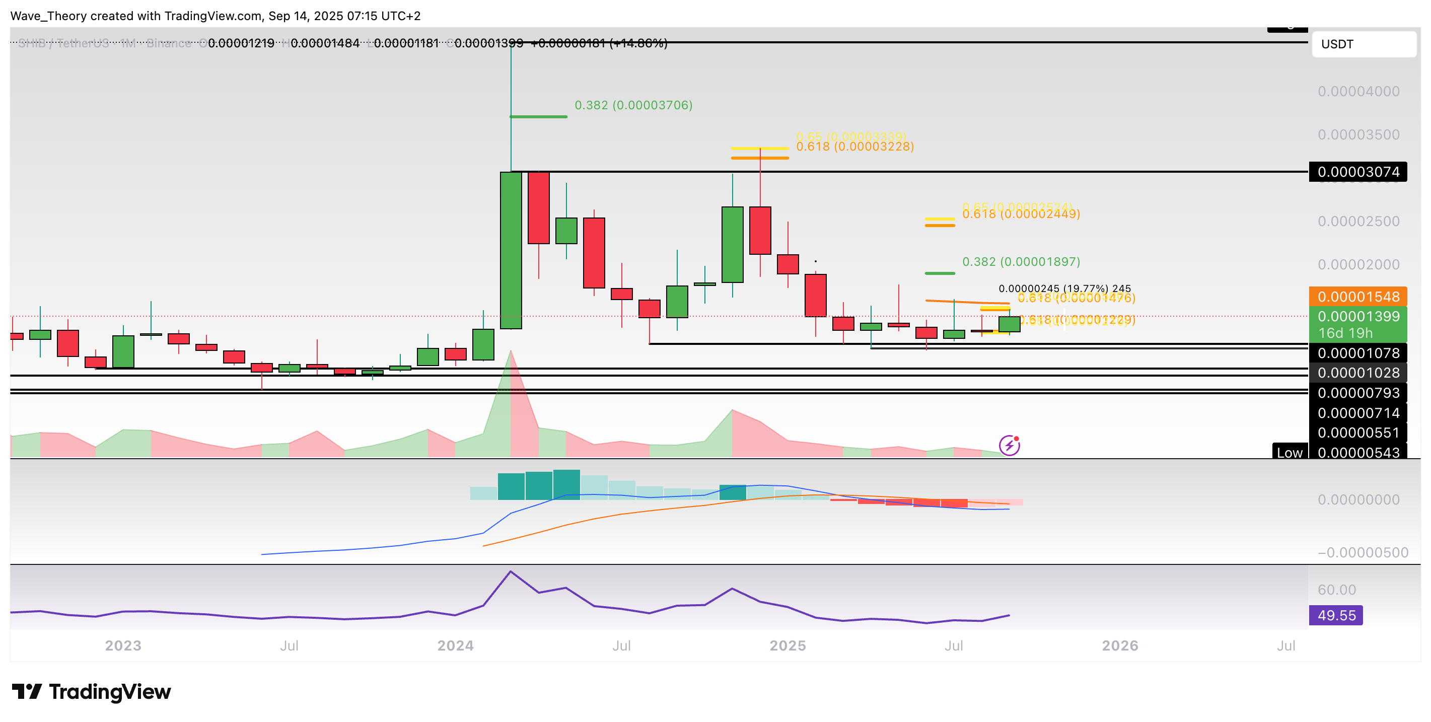 Sollte der Kurs jetzt stark korrigieren, wartet spätestens an der Golden Ratio bei rund 0,0000123 USD signifikante Fib Unterstützung auf den SHIB Kurs.