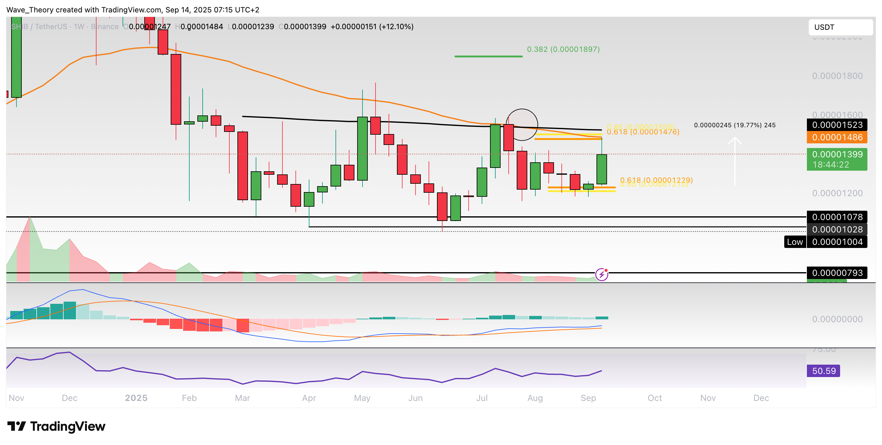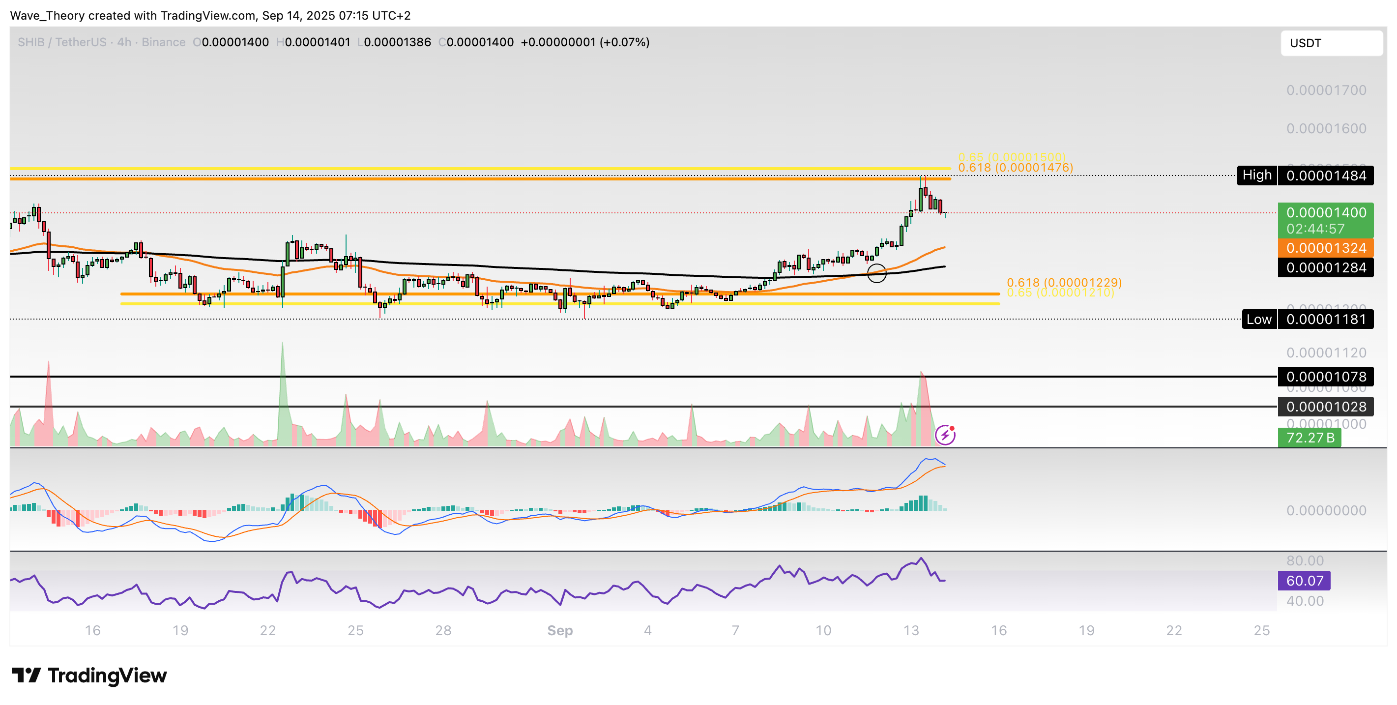 Shiba-Inu-Prognose für Sonntag, 14. September 2025: Der Shiba Inu Coin konnte in dieser Woche eine starke Aufwärtsbewegung initiieren.