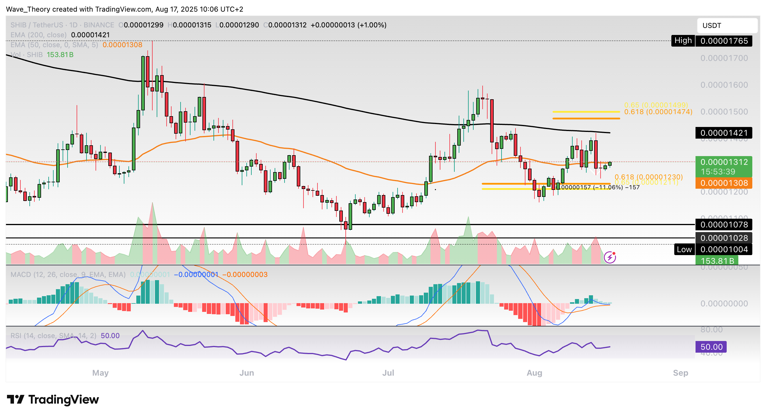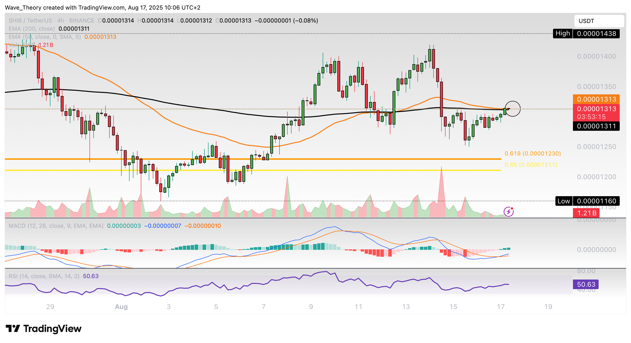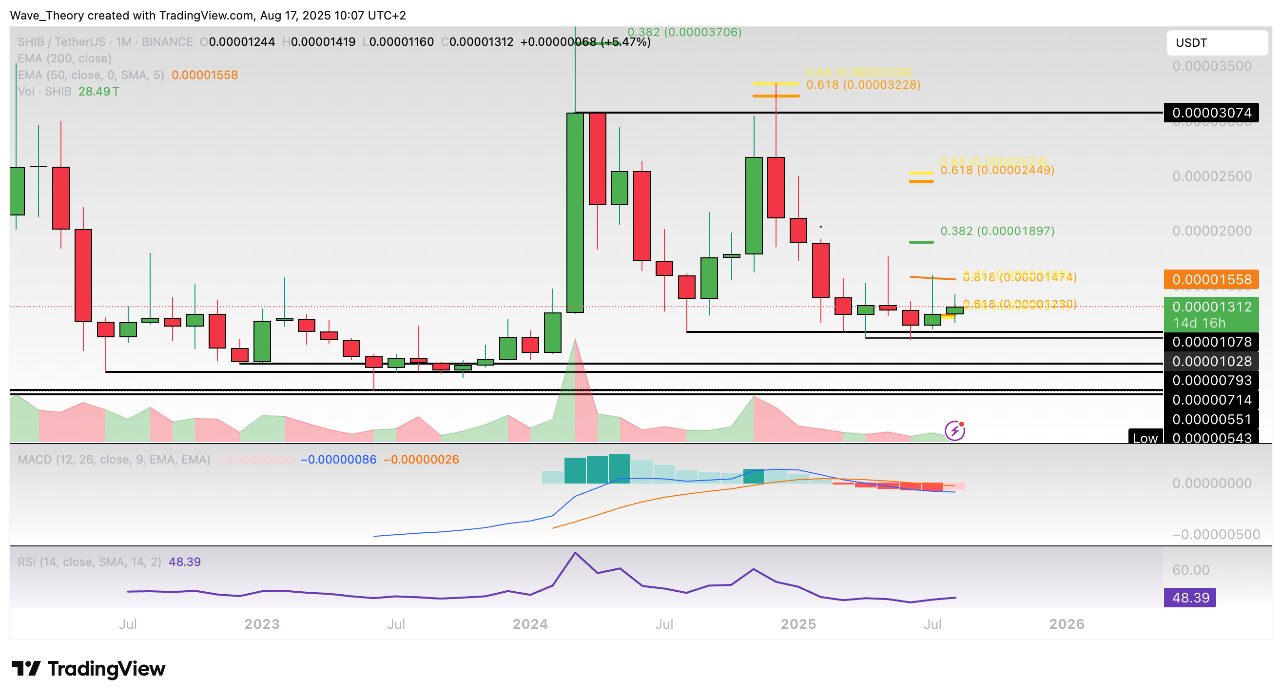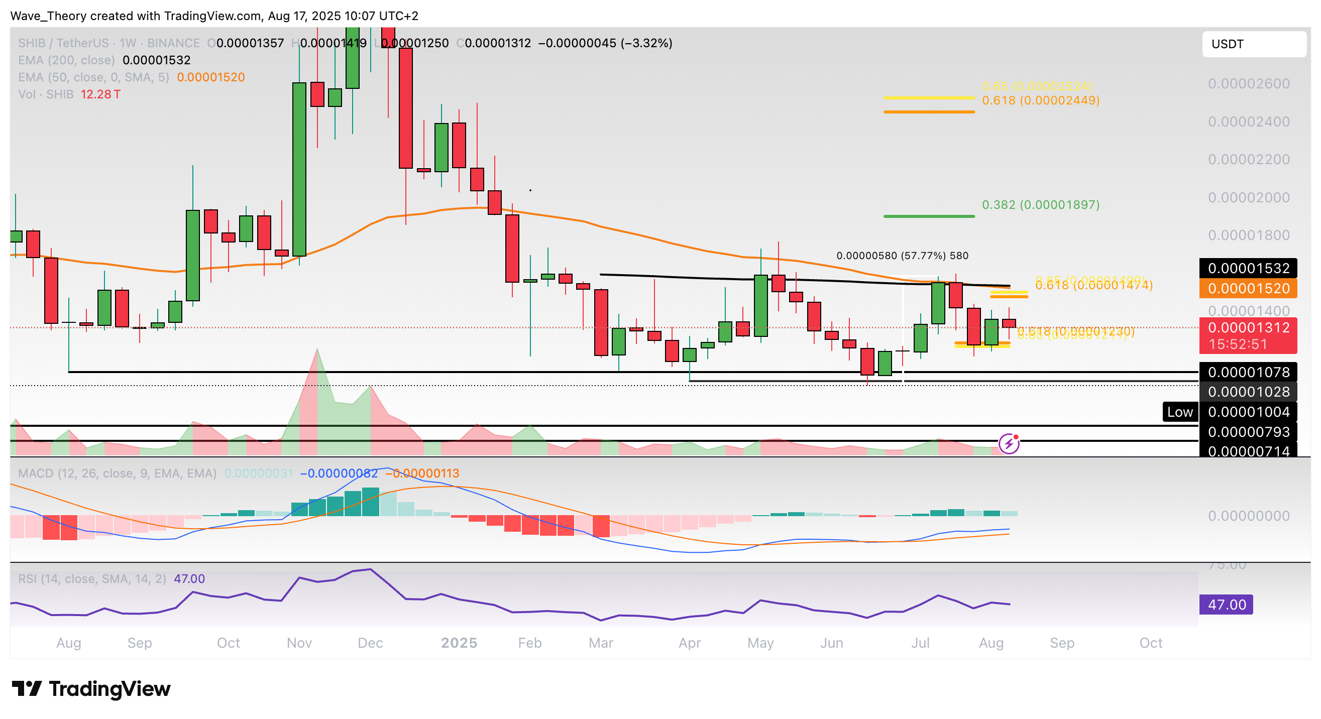 Ansonsten wartet bei rund 0,0000123 USD die nächste signifikante Fib Unterstützung.