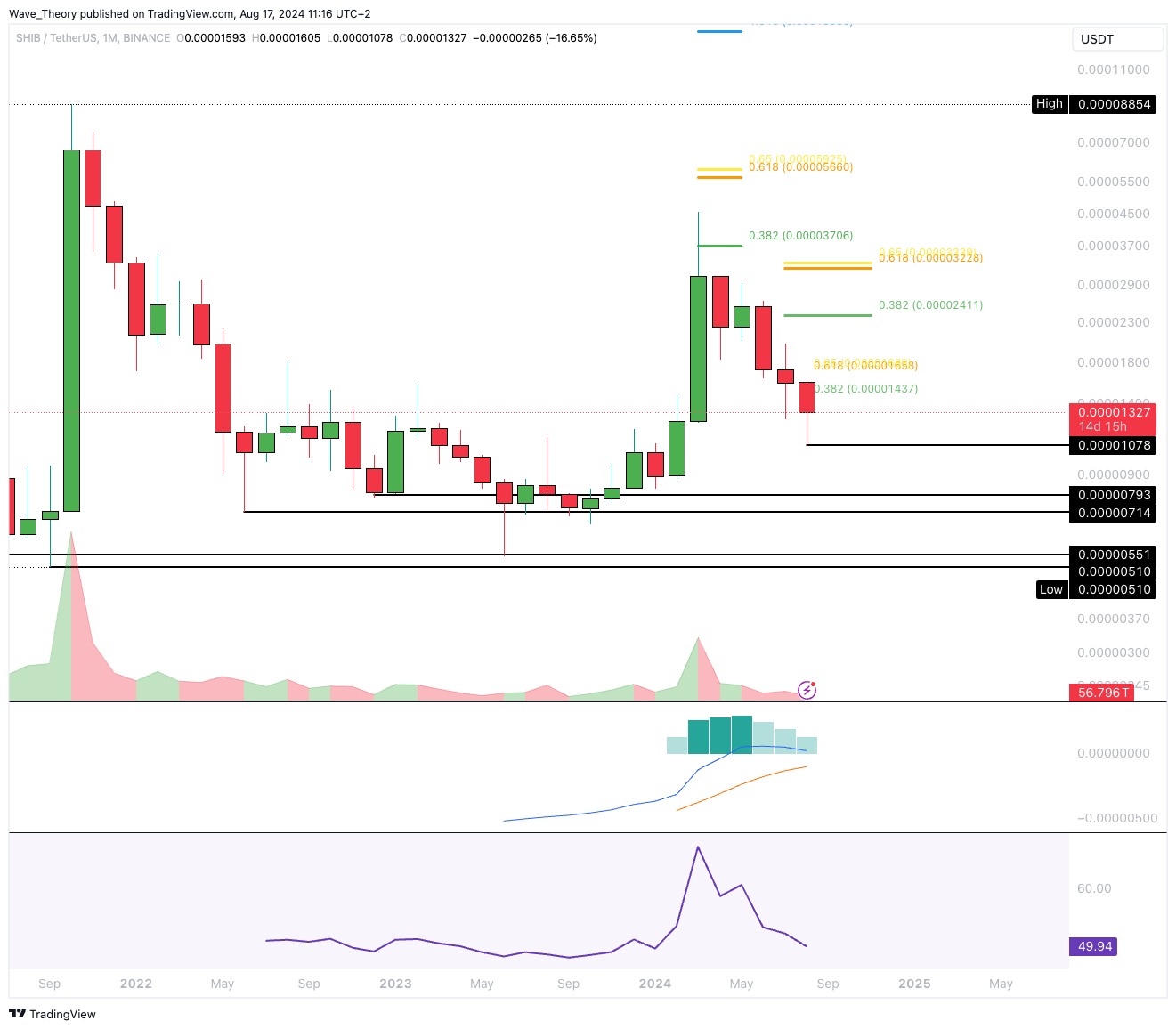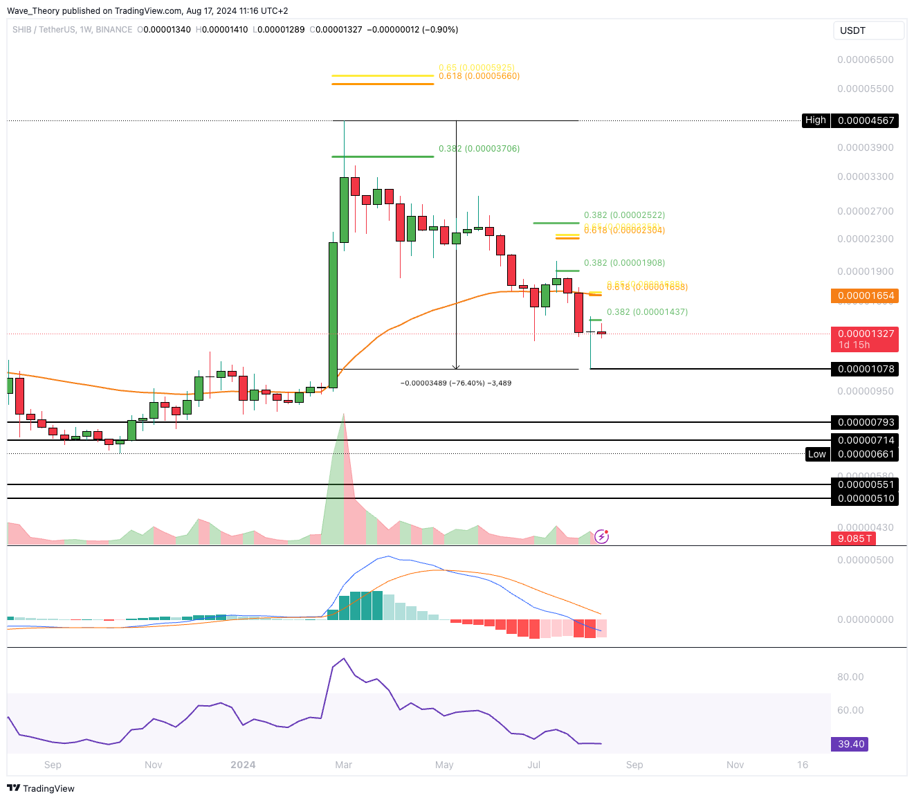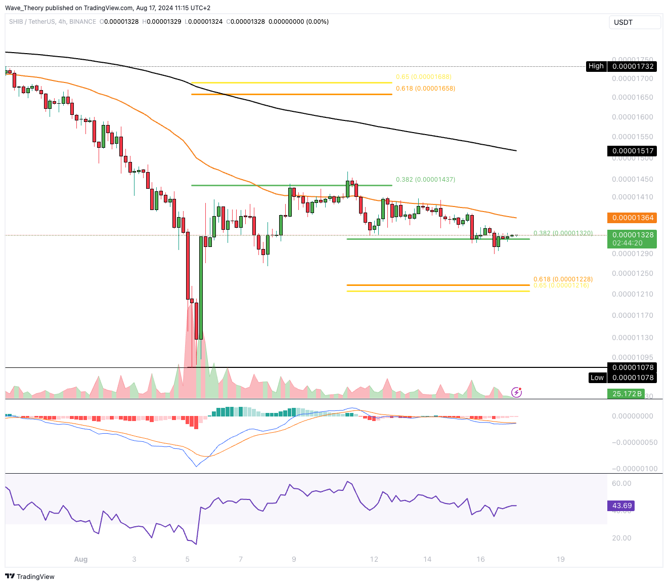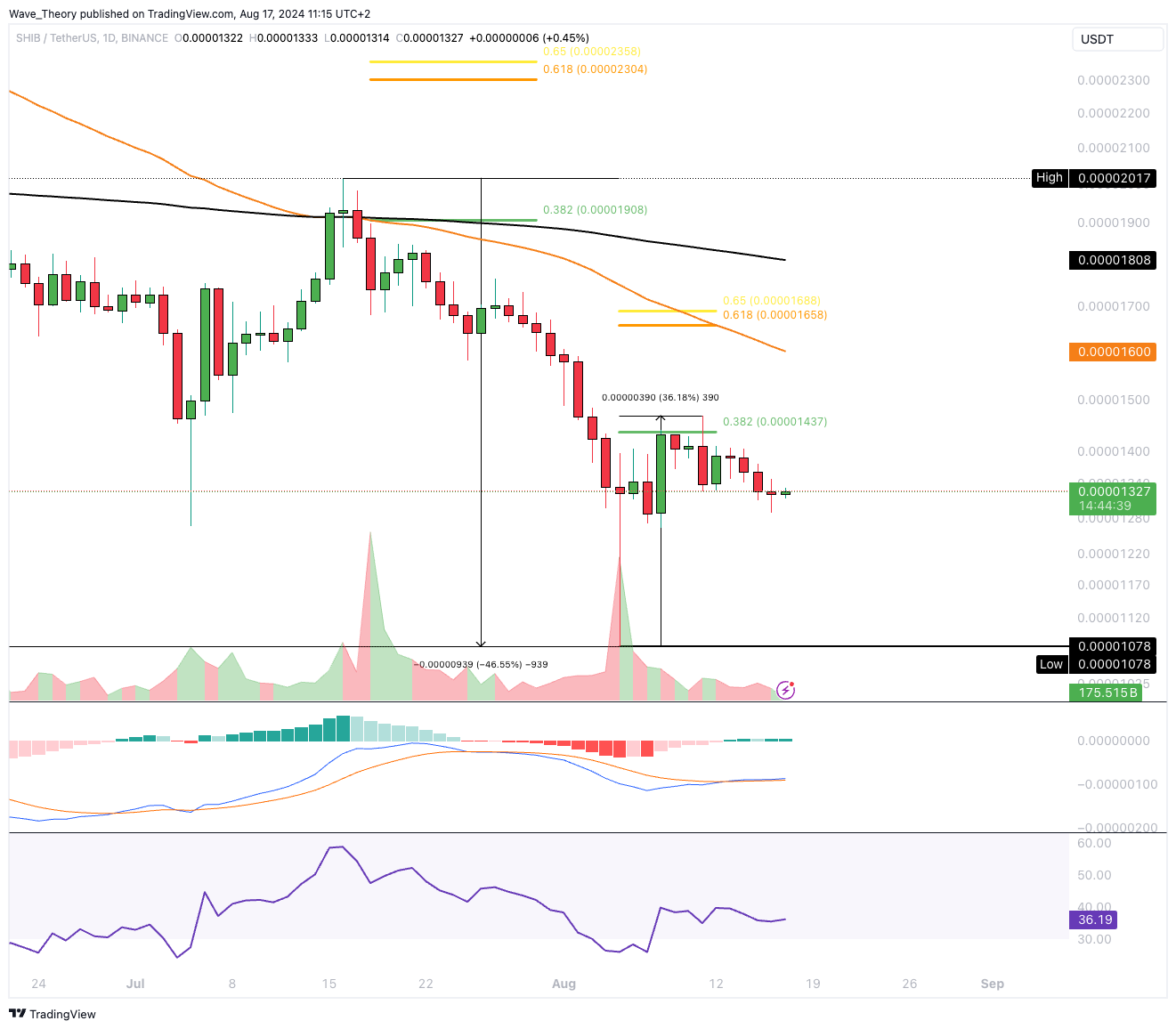 Der Shiba Inu Coin wurde am 0,382 Fib Widerstand bärisch abgewiesen