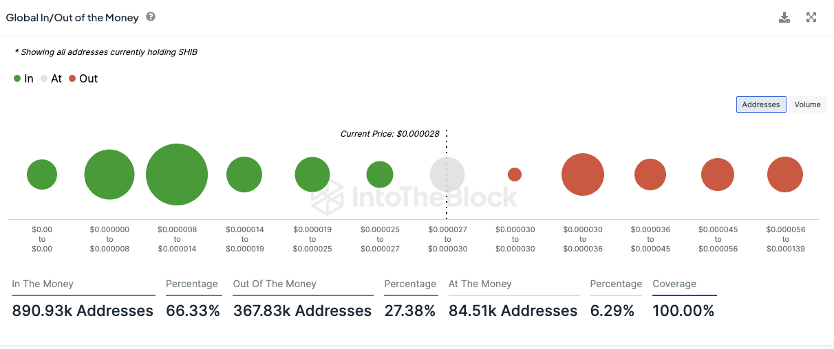 Knapp zwei Drittel (66 %) der Shiba Inu Adressen sind wieder im Plus