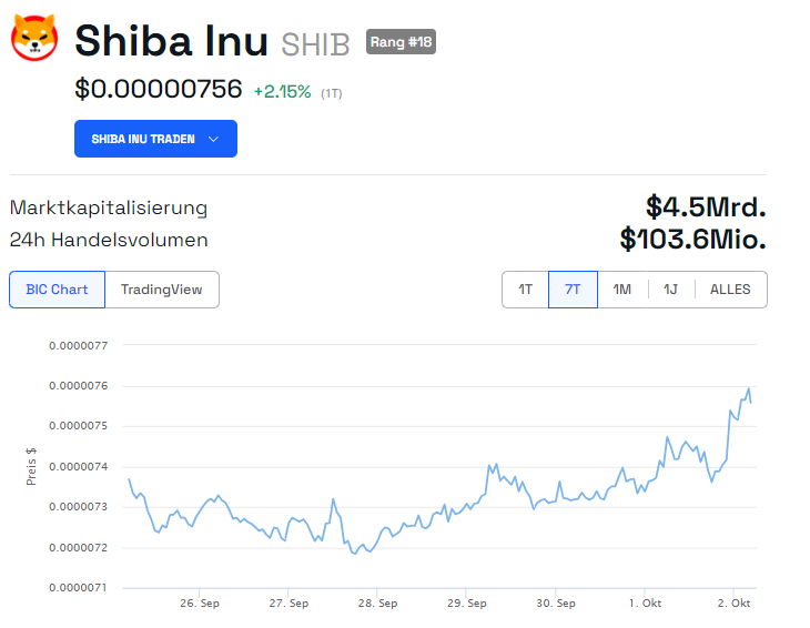 Der SHIB Kurs scheint wieder an Momentum zu gewinnen. Weil sich das Shiba Inu Ökosystem nach dem Launch von Shibarium wieder zu erholen scheint, verzeichnet der SHIB Kurs über das Wochenende neue Kurszuwächse.