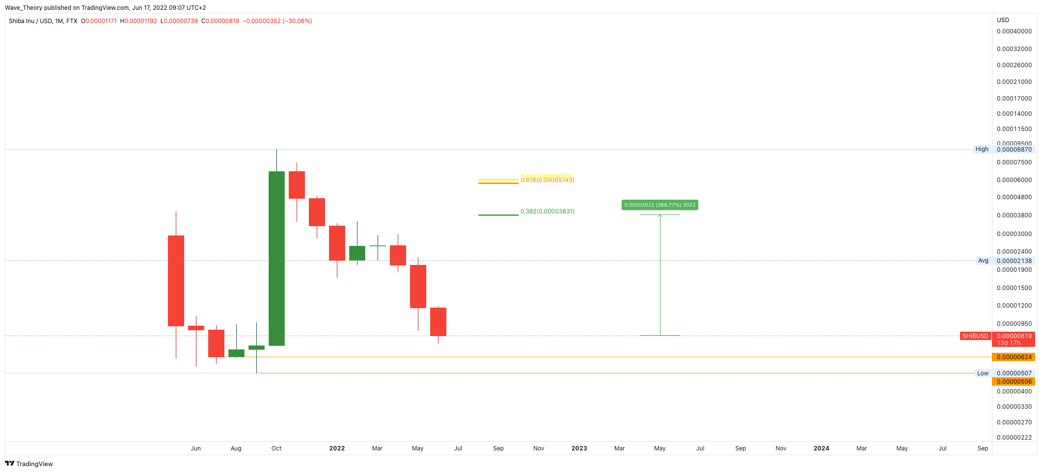 SponsoredZudem erwartet den SHIB Kurs bereits rund 370 % über dem aktuellen Preisniveau signifikanter Fibonacci Widerstand.