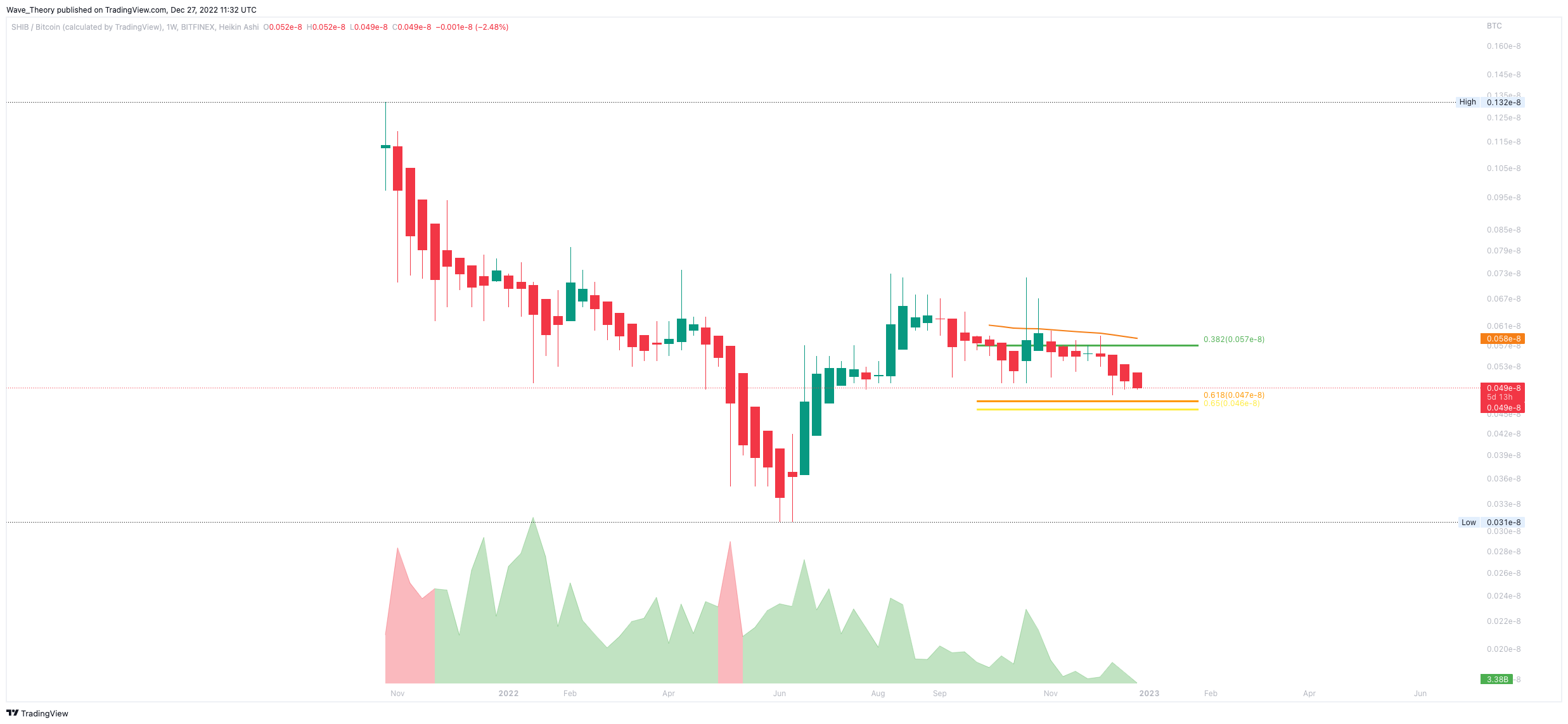 Gegen BTC bewegt sich der SHIB Kurs zur Golden Ratio Unterstützung