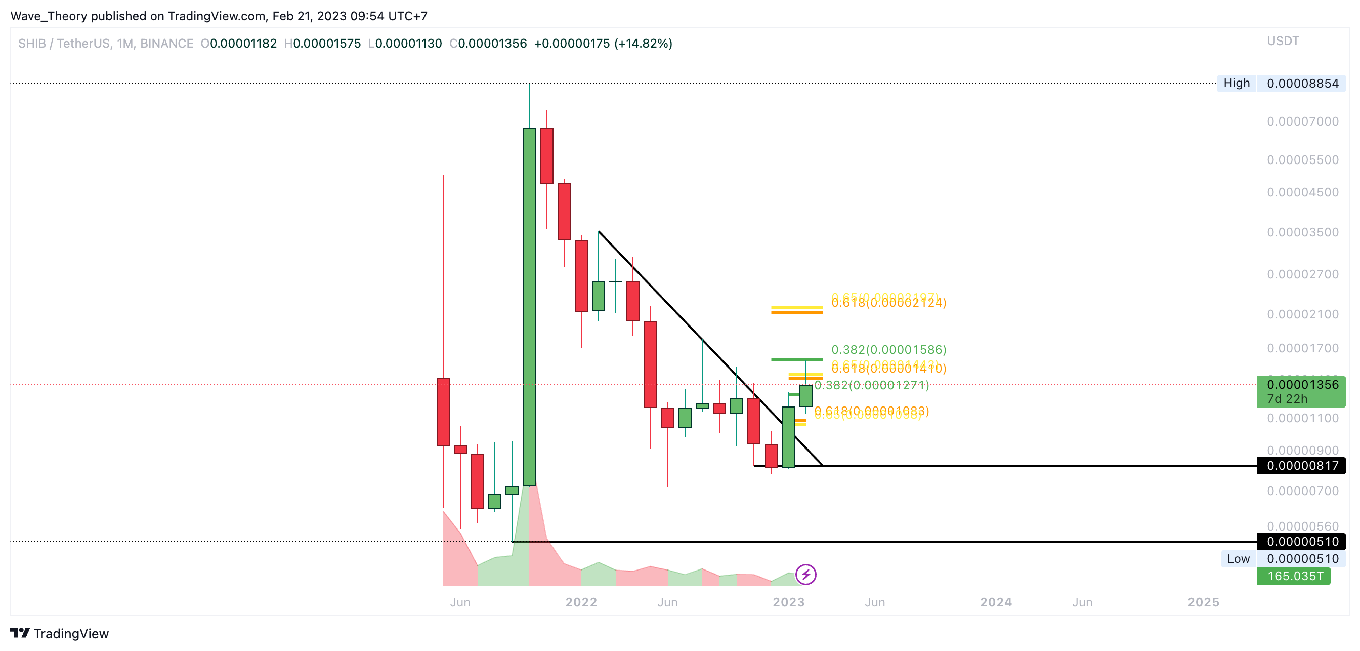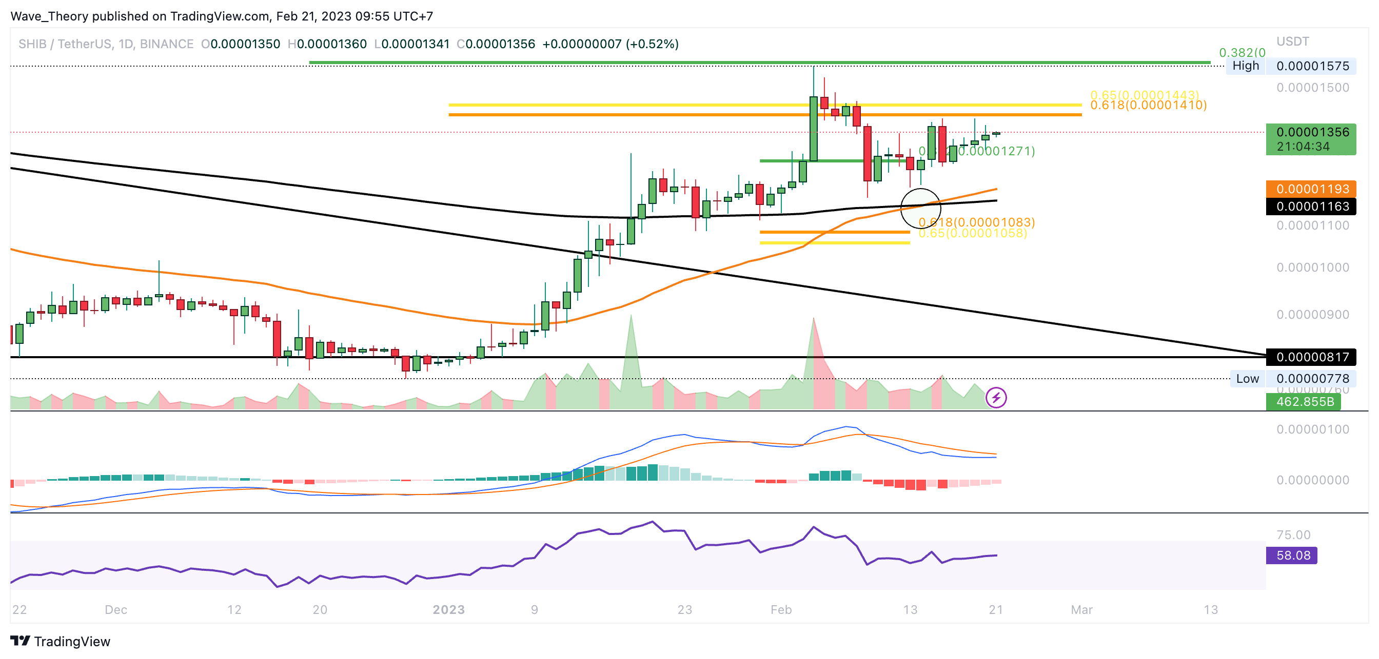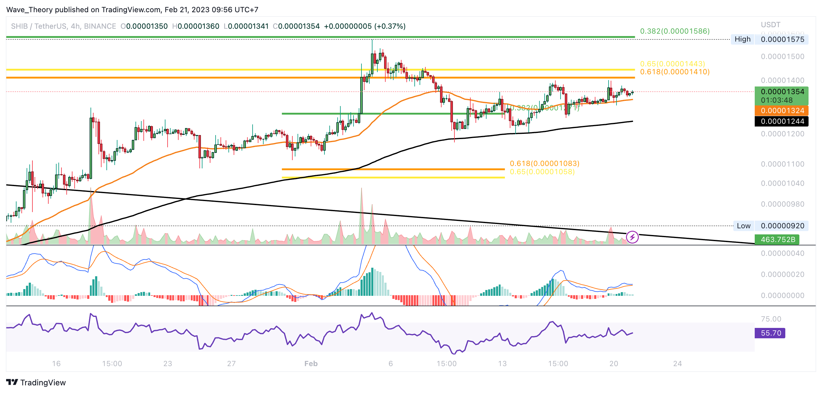 Wird Shiba Inu den 0,382 Fib Widerstand bei rund 0,00001586 USD brechen können?