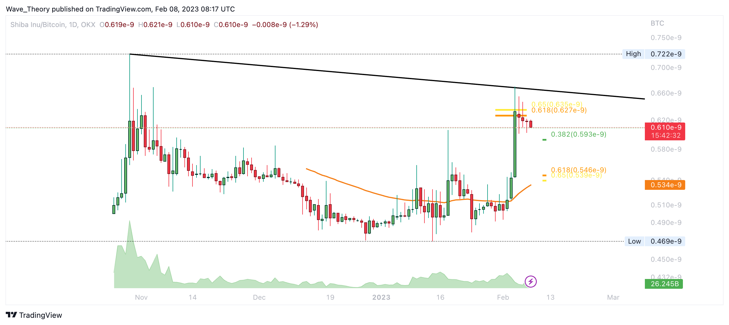 Auch gegen BTC stößt Shiba Inu auf signifikanten Golden Ratio Widerstand