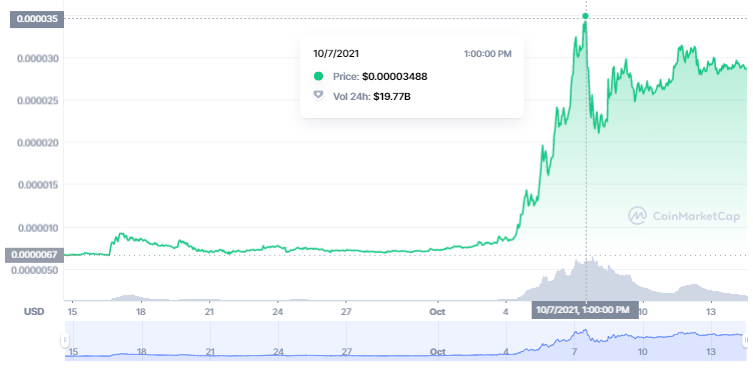 Das letzte Allzeithoch des SHIB Coins ist gar nicht mal so lange her: Am 10. Juli 2021 lag der SHIB Kurs bei 0,00003488 US-Dollar. Mittlerweile liegt der Shiba Inu Kurs bei 0,00002863 US-Dollar und ist damit nicht sehr weit vom ATH entfernt. Die letzten Tage bewegte sich der SHIB Preis in einer unentschlossenen Seitwärtsbewegung. Allerdings könnte das hohe Interesse der Investoren und Trader den Coin während der momentanen allgemein positiven Krypto-Marktentwicklung den Shiba Inu Kurs weiter hochtreiben.