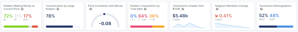 Wenn wir uns die Metriken von intotheblock näher ansehen, fällt auf, dass 78 Prozent der verfügbaren Shiba Inu Coin Menge in den Wallets von Großinvestoren liegen. Diese Großinvestoren, Whales, halten mindestens ein Prozent des gesamten Angebots. Ein Abverkauf großer Mengen Shiba Inu Coins könnte den SHIB Kurs beeinflussen.