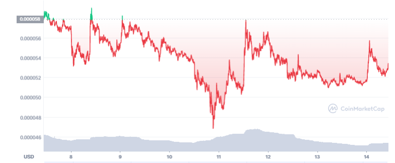 Der Shiba Inu Kurs formte am 28. Oktober 2021 ein neues Allzeithoch bei 0,00007959 US-Dollar. Seitdem haben wir beim SHIB Kurs hohe Volatilität gesehen und einen Preisrückgang auf 0,0000533 US-Dollar. In den letzten 7 Tagen ging es rund 6 Prozent abwärts für den Shiba Inu Kurs.