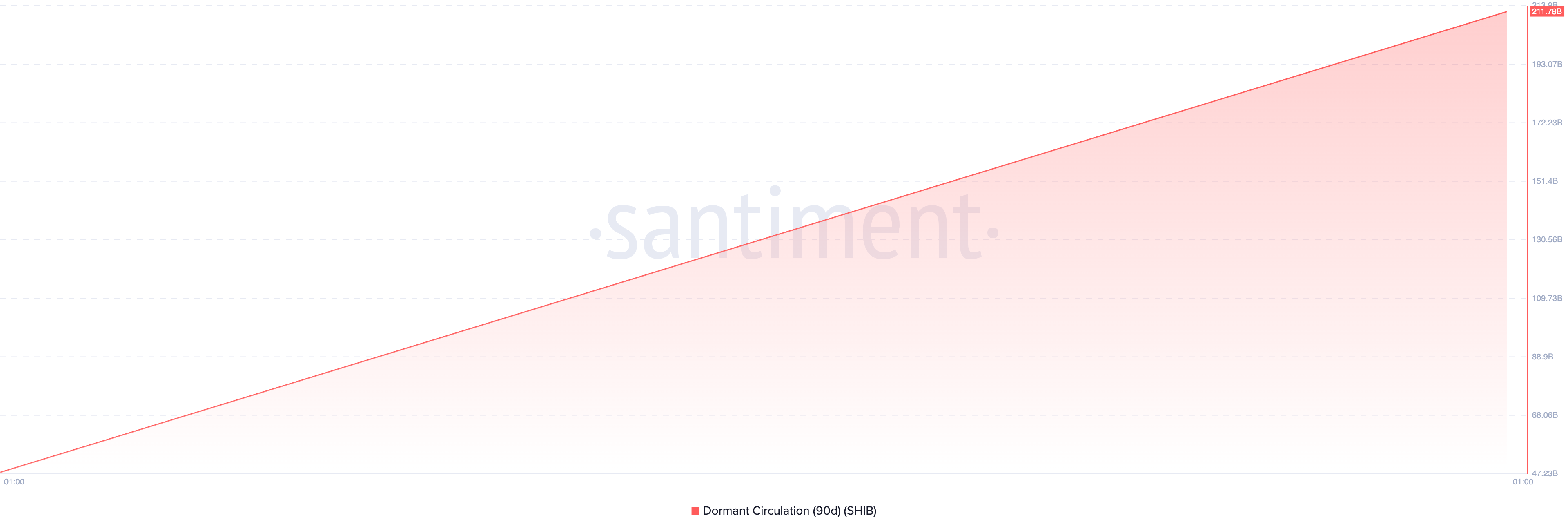 Der Hauptgrund für diese These ist der Anstieg der 90-Tage ruhenden Zirkulation von Shiba Inu. Wie der Name schon sagt, zeigt die ruhende Zirkulation die Anzahl der unterschiedlichen Coins, die an einem bestimmten Tag gehandelt wurden, obwohl sie lange Zeit nicht bewegt wurden.