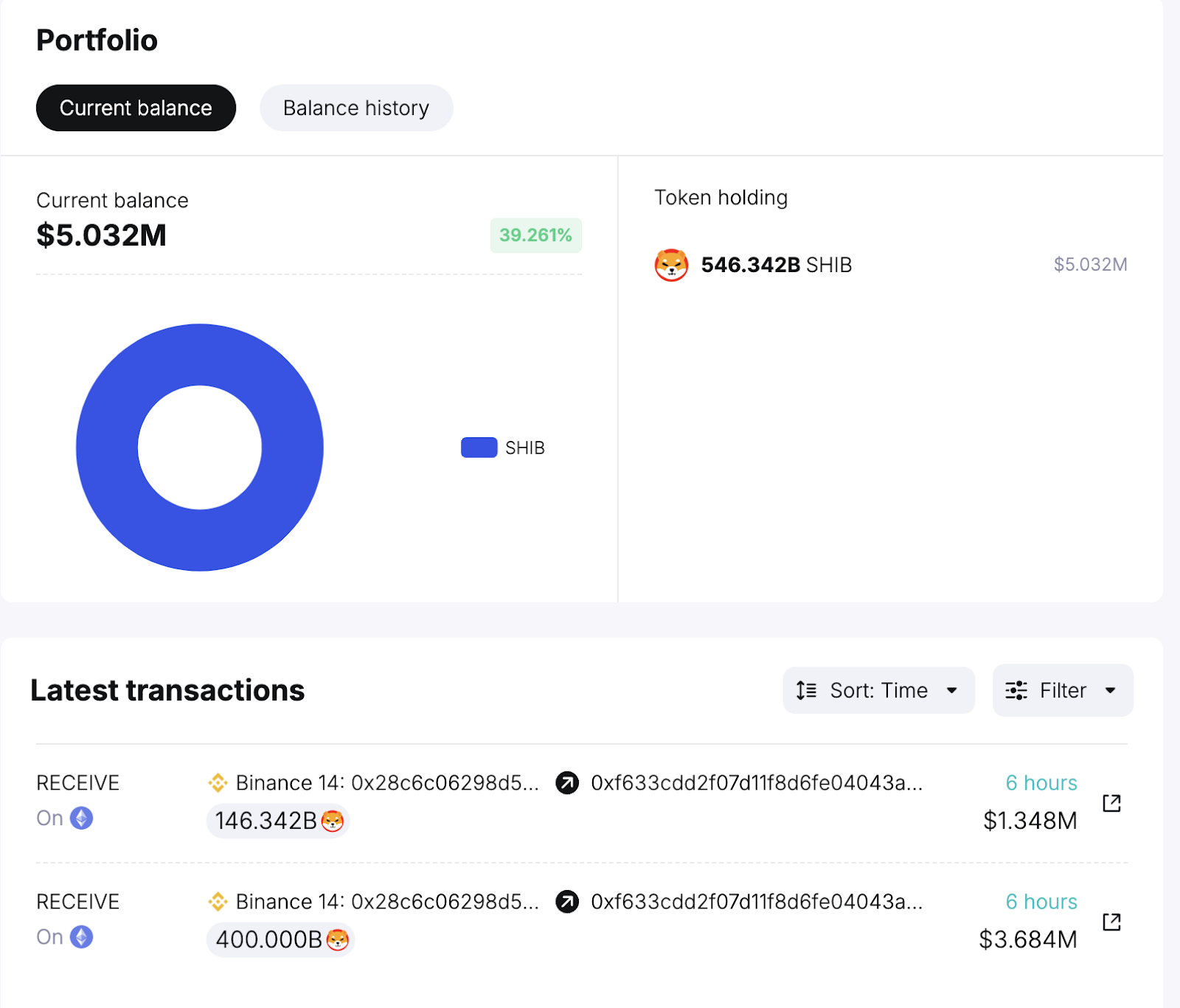 Laut der On-Chain-Analyse-Plattform Spotonchain hat eine neue Wal Wallet mehr als 546,342 Milliarden SHIB Token auf Binance gekauft. Die Wallet hat derzeit einen Wert von fünf Millionen USD und besteht hauptsächlich aus SHIB.
