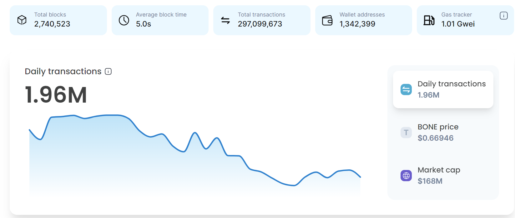 Die neuesten Daten von ShibariumScan zeigen, dass die Anzahl der Transaktionen auf der Blockchain bei beeindruckenden 297 Millionen liegt, verteilt auf 2,7 Millionen Blöcke.