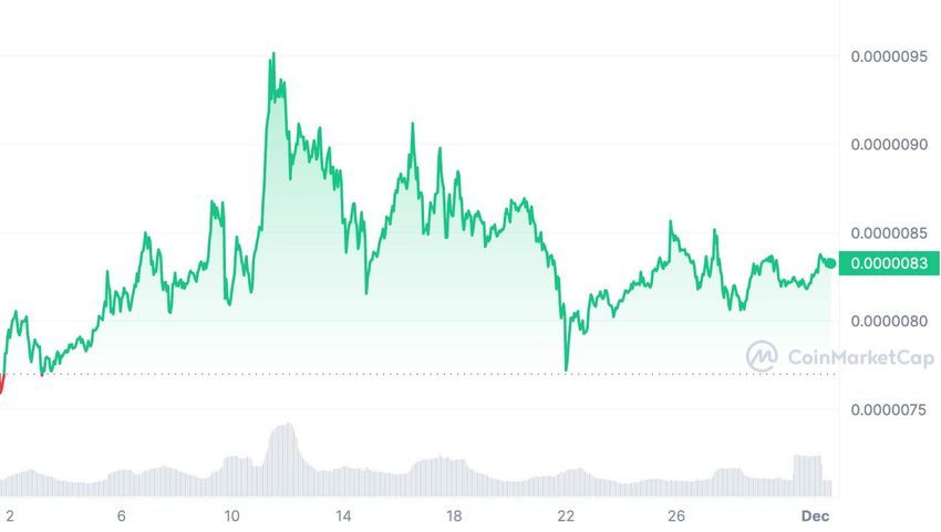 Auch interessant ist in diesem Kontext die Betrachtung potenzieller Unterstützungsniveaus. Falls der Preis weiter fällt, könnten Zwischenunterstützungen bei den Preisen $0.00000806 und $0.00000761 liegen. Diese Levels könnten entscheidende Haltepunkte darstellen, die einen weiteren Preisverfall verhindern könnten.