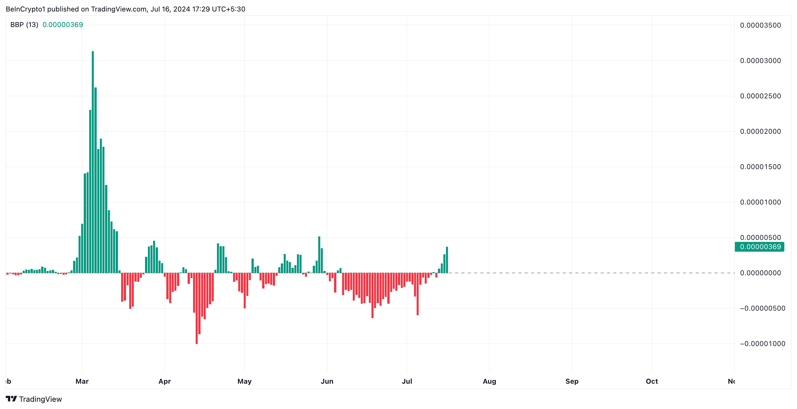 Zudem zeigen Messwerte des Elder-Ray-Index von SHIB dass die Bullenkraft derzeit dominiert. Zum Zeitpunkt der Veröffentlichung liegt der Wert des Indikators bei 0,0000036. Seit dem 13. Juli wurden nur positive Werte verzeichnet.