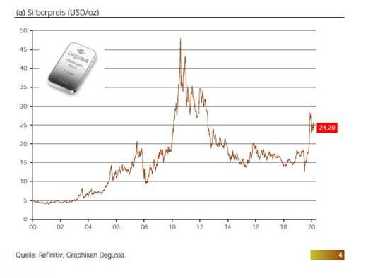 Im Marktbericht von Degussa heißt es zum Silber Preis: