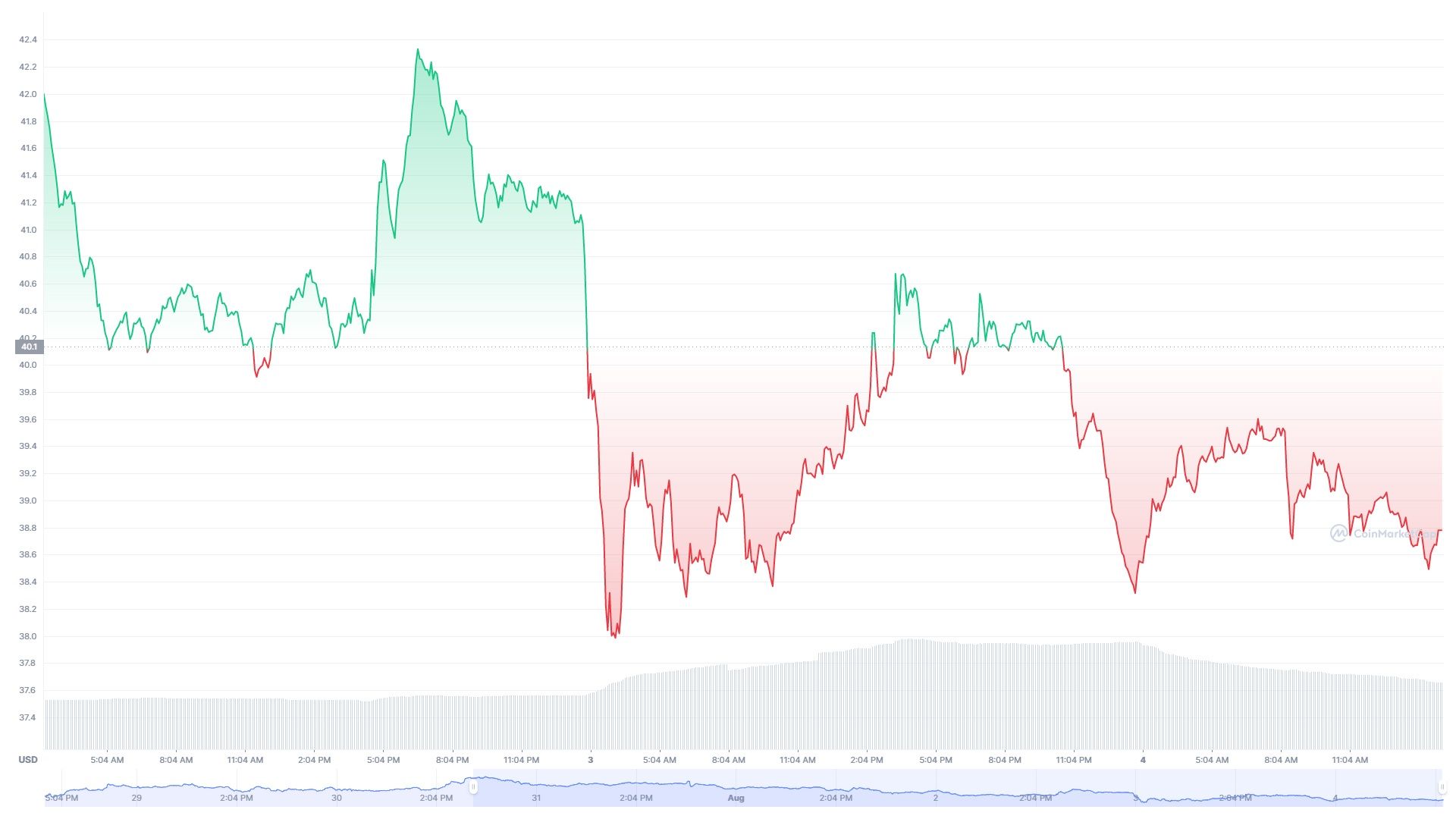 Die negativen News wirkten sich außerdem auf den Solana Kurs aus. Nach dem Hack fiel der SOL Kurs unter die 40-US-Dollar-Marke und erreichte mit aktuell rund 38 US-Dollar ein neues 7-Tages-Tief.