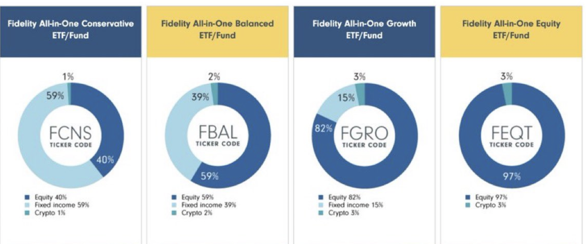 Fidelity Investments ermöglicht es nun allen US-Anleger:innen, Anteil am gesamten Kryptomarkt zu haben, indem diese in vier ETFs mit unterschiedlichen Kryptoanteilen investieren können.
