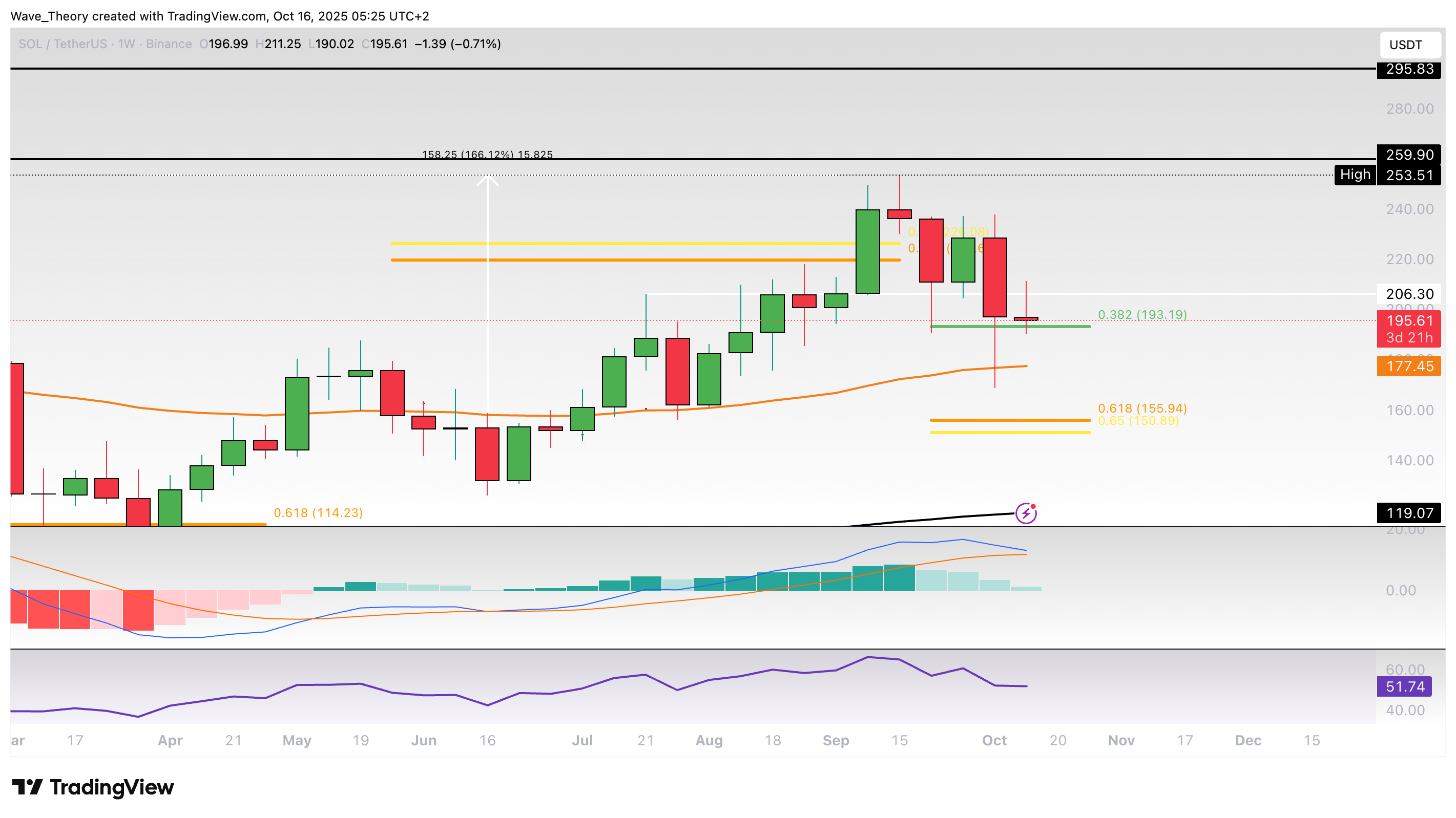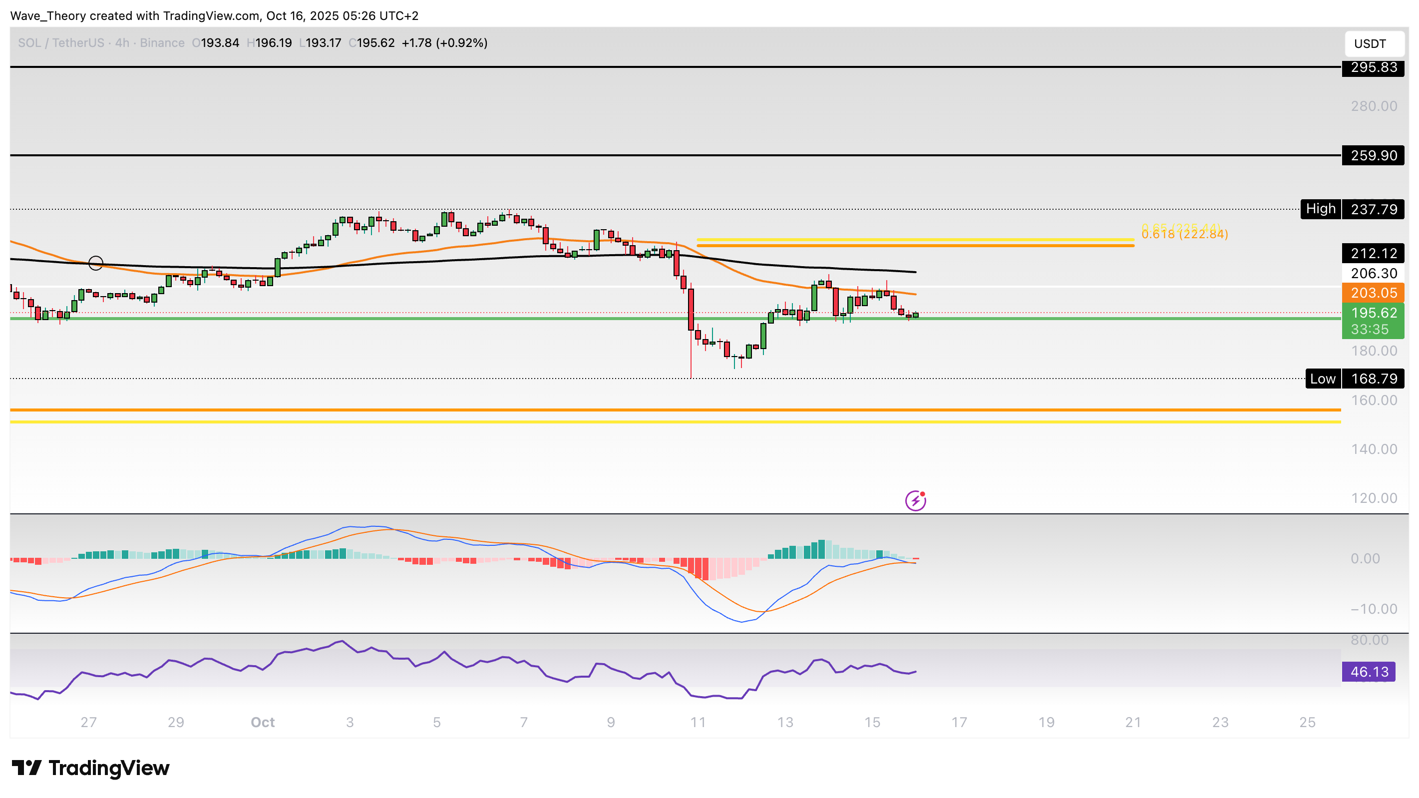 Solana-Prognose für Donnerstag, 16. Oktober, 2025: Der Solana Kurs ist in Zuge des Kryptocrashs ebenfalls gefallen, aber stößt jetzt auf Unterstützung.