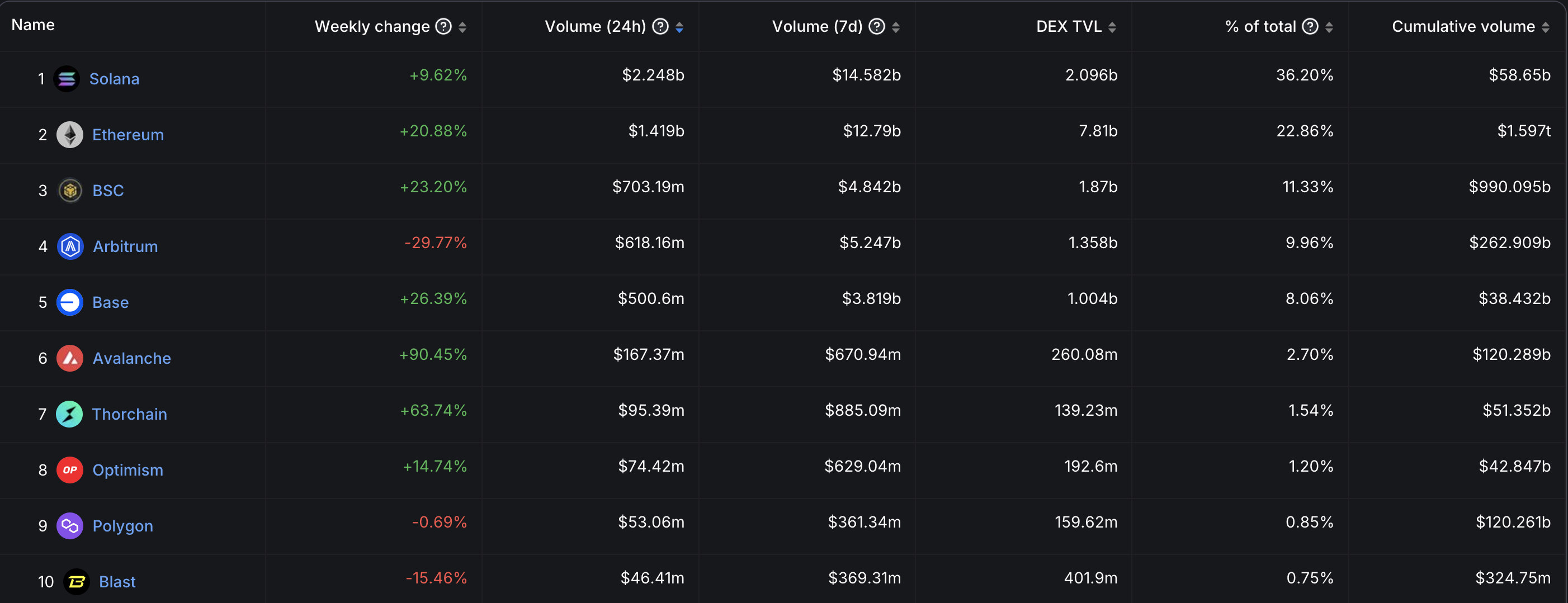 Sowohl Ethereum als auch BNB Chain verzeichneten höhere wöchentliche Steigerungen, doch das reichte nicht aus, um Solana von der Spitzenposition zu verdrängen.