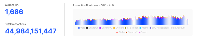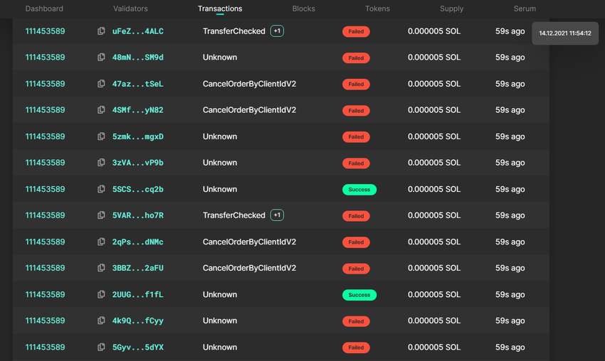 Dem Bild von SolanaBeach entnehmen wir, dass es im Netzwerk tatsächlich zu einigen abgebrochenen Transaktionen kam. Der vorübergehende Leistungsabfall im Netzwerk soll darauf zurückzuführen sein, dass zehntausende von Menschen versuchten sich NFTs namens CHICKS zu sichern. Entsprechend kam es zu einer Netzwerküberlastung der Raydium DEX von Solana. Somit sank während des IDOs der SolChicks die durchschnittliche Transaktionsmenge auf 1.000 pro Sekunde – normalerweise laufen über das SOL Netzwerk rund 50.000 TPS (Transaktionen pro Sekunde).