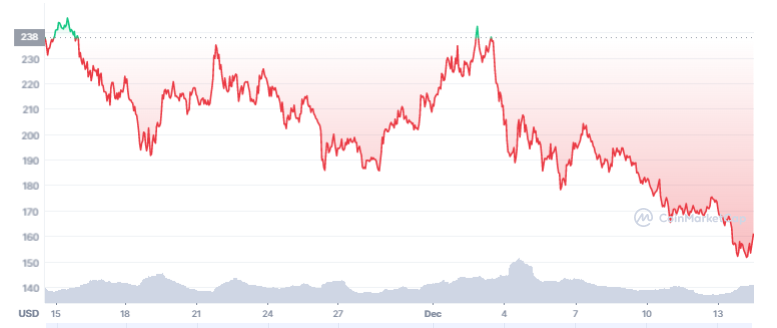 Der Solana Kurs befindet sich seit Anfang Dezember in einem klaren Abwärtstrend. Ob die Nachrichten über einen möglichen DDoS-Angriff und die aktuellen Informationen über den Netzwerkausfall zu einer Kurssenkung beigetragen haben, ist fraglich.