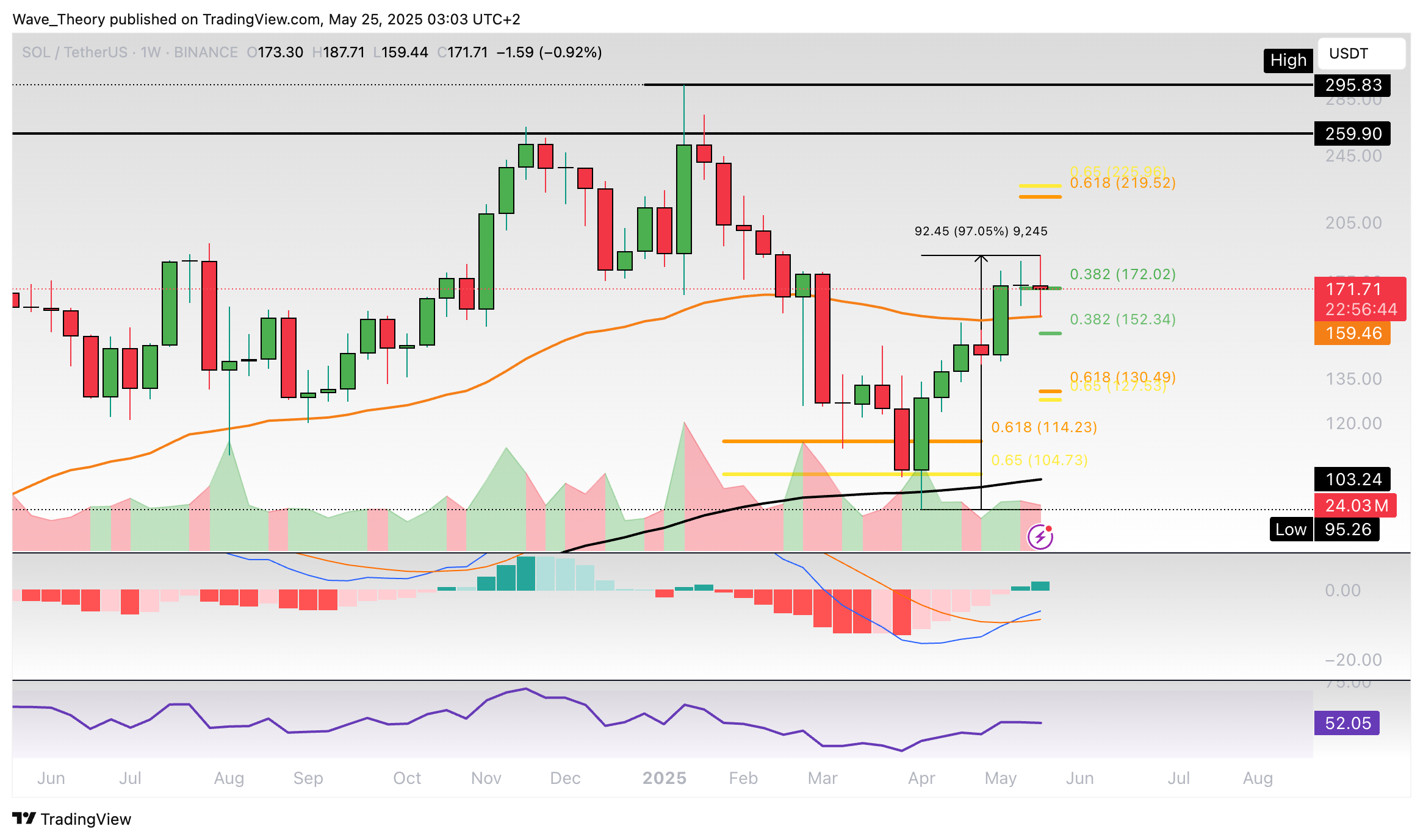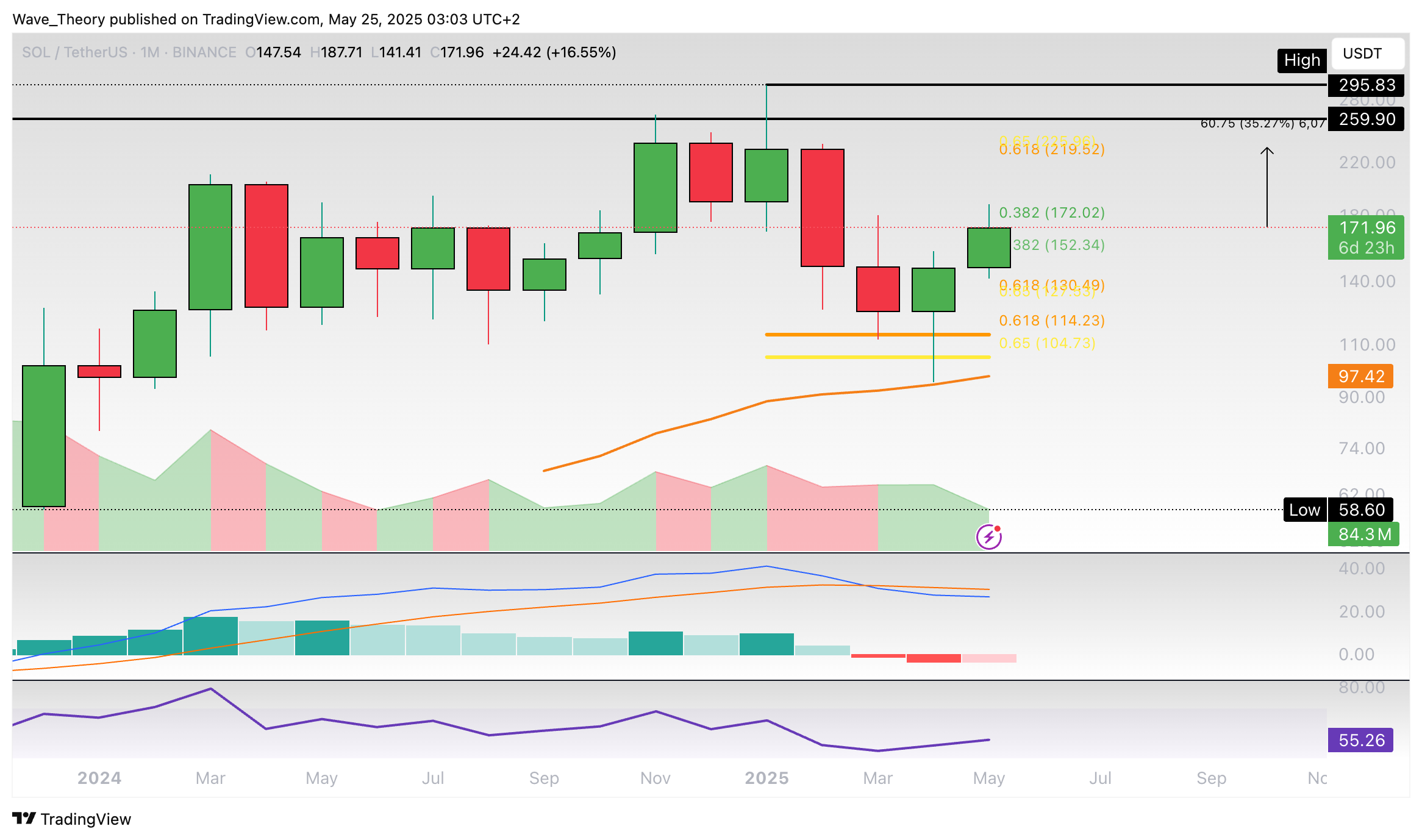 Sollte Solana die Golden Ratio bei rund 220 USD erreichen, impliziert das ein Aufwärtspotenzial von rund 35 %.