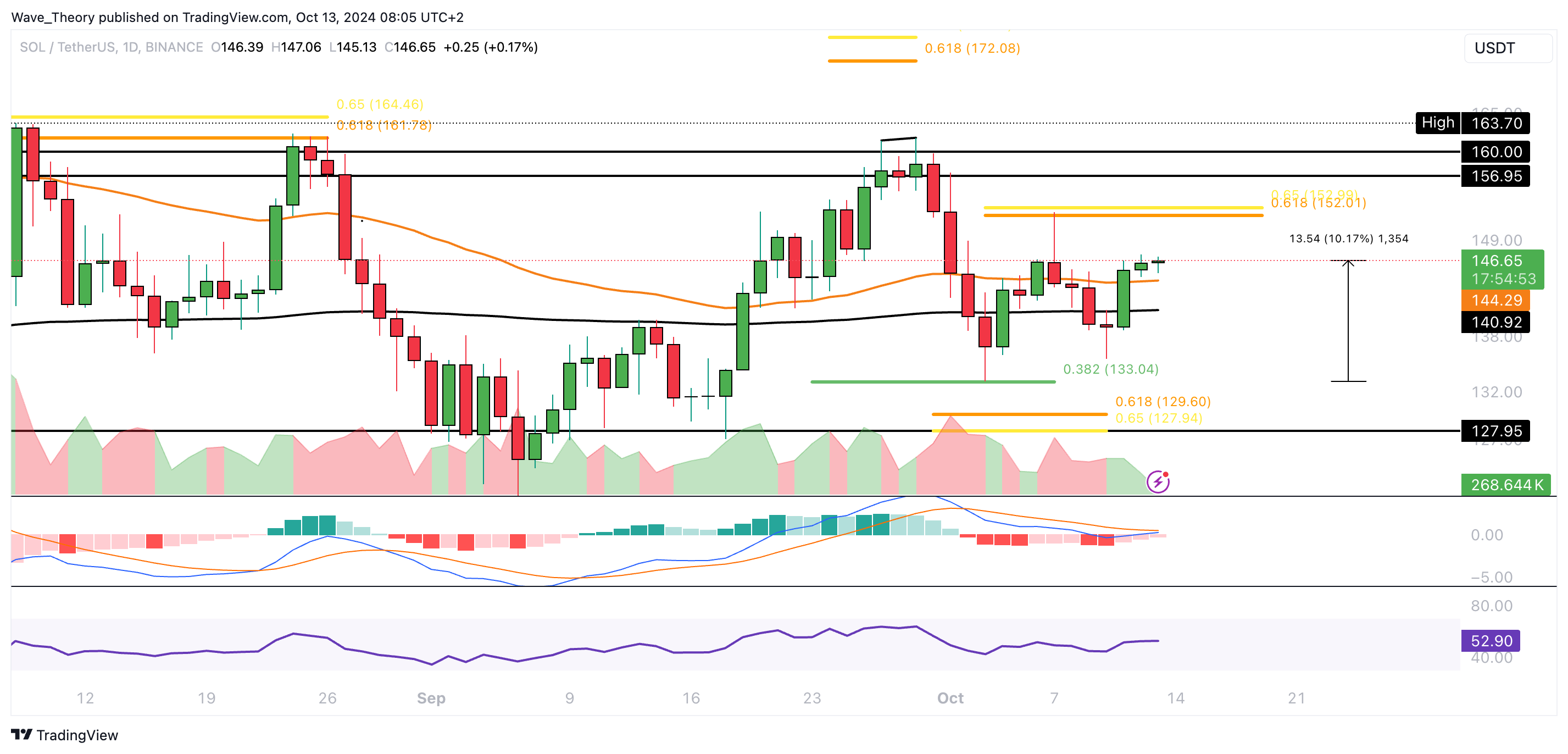 Rund 10 % steht der Solana Preis aktuell über dem 0,382 Fib Niveau bei rund 133 USD. Tatsächlich könnte Solana jetzt noch höher steigen, um den Golden Ratio Widerstand bei rund 153 USD erneut ins Visier zu nehmen.