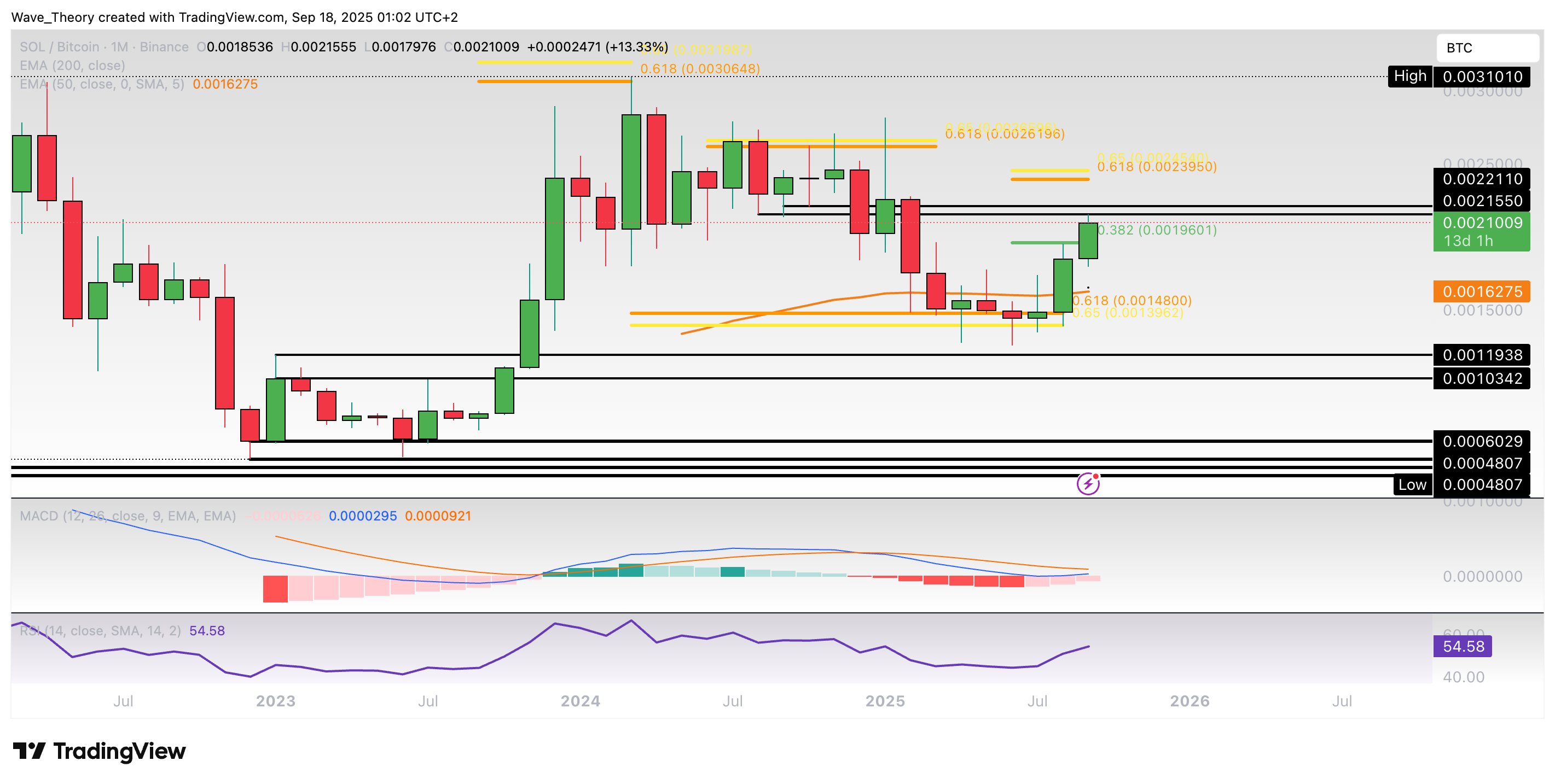 Gegen Bitcoin konnte Solana jetzt den 382 Fib Widerstand bei rund 0,00196 BTC bullisch brechen. Damit könnte Solana jetzt das nächste Fib Niveau bei rund 0,0024 BTC anvisieren.