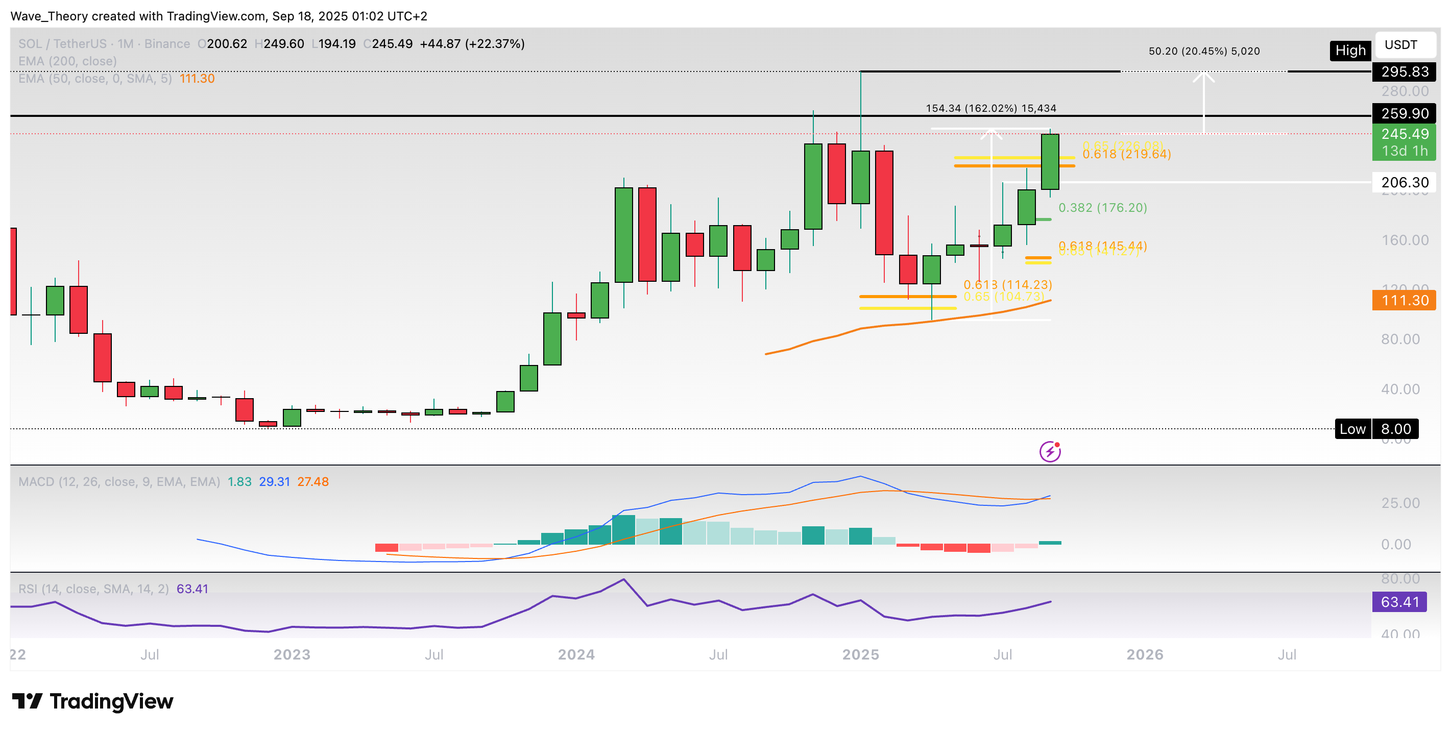 Seit Solana im April am 50-Monate-EMA bullisch abgeprallt ist, konnte der SOL Kurs rund 162 % steigen. Dabei konnte er jetzt den kritischen Golden Ratio Widerstand bei rund 220 USD überwinden.